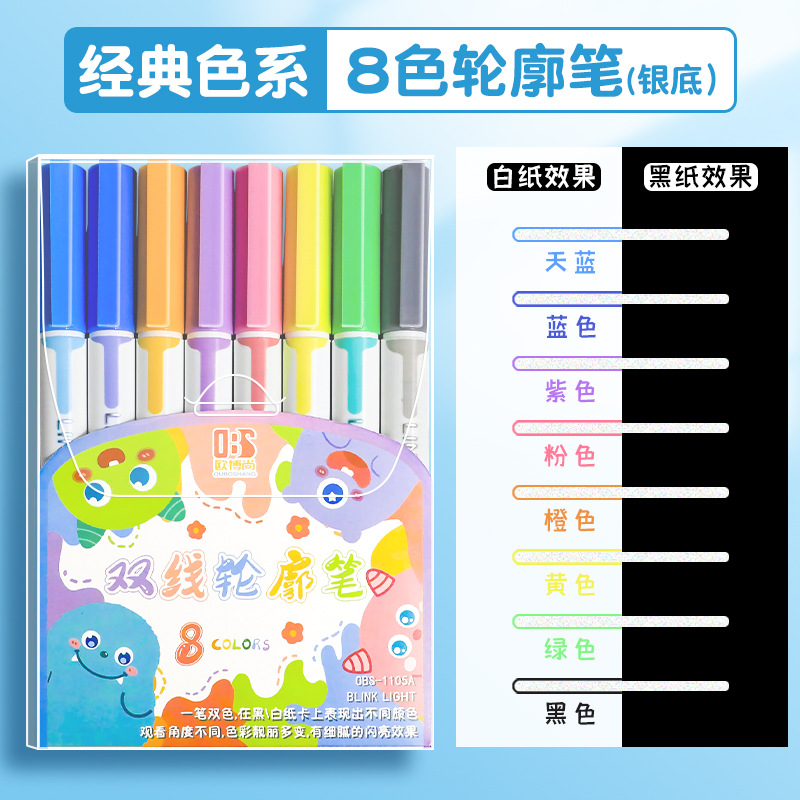 2색 윤곽펜 24색 글리터 핸드북 학생용 특수 2색 형광 마커 마커 펜