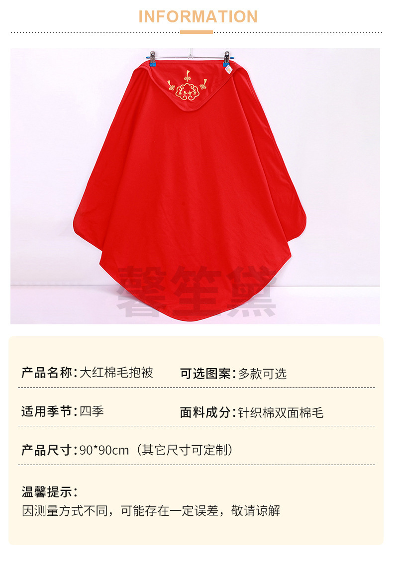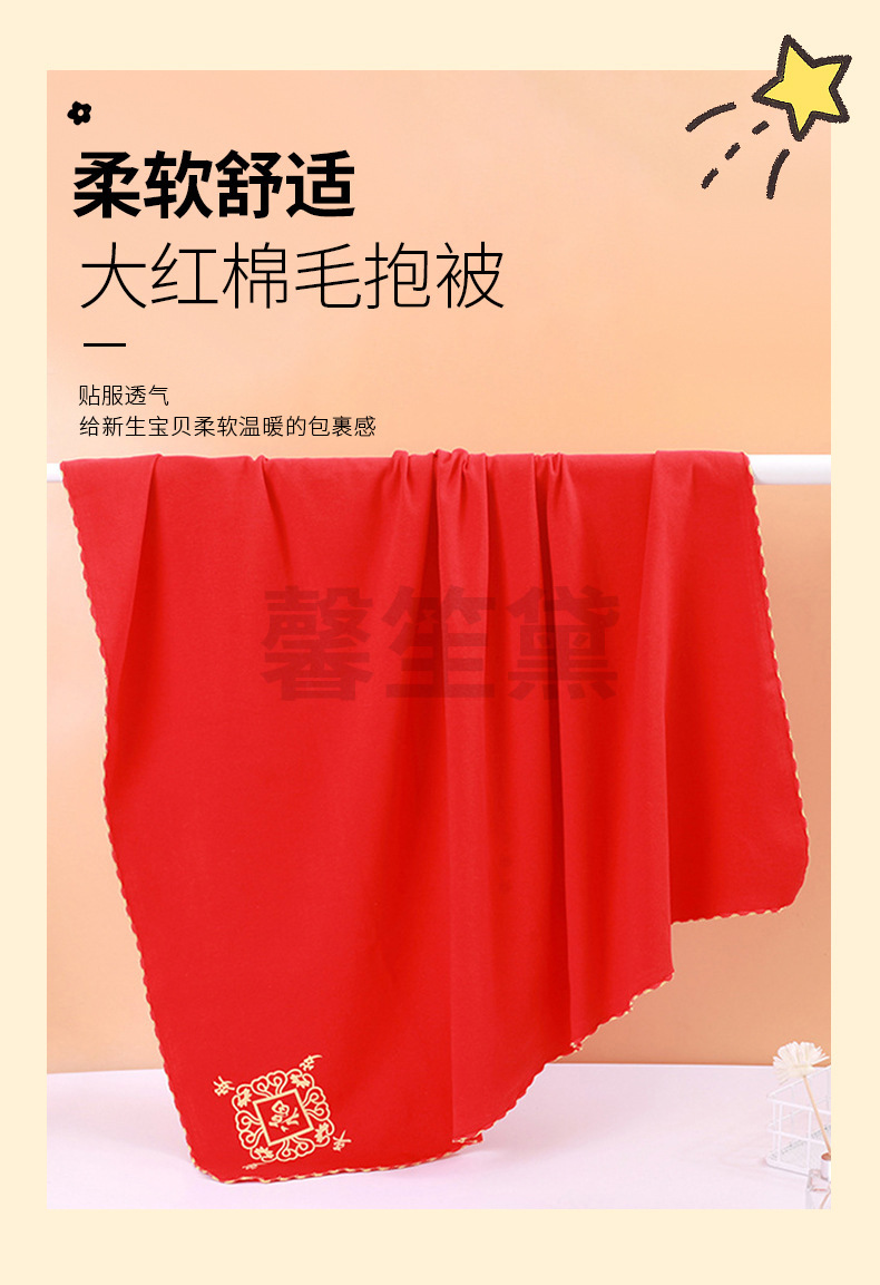 순면 단층 빨간색 아기 이불, 새해 축제, 사계절 신생아 이불, 외출 시 두꺼워짐, 통기성 및 방풍