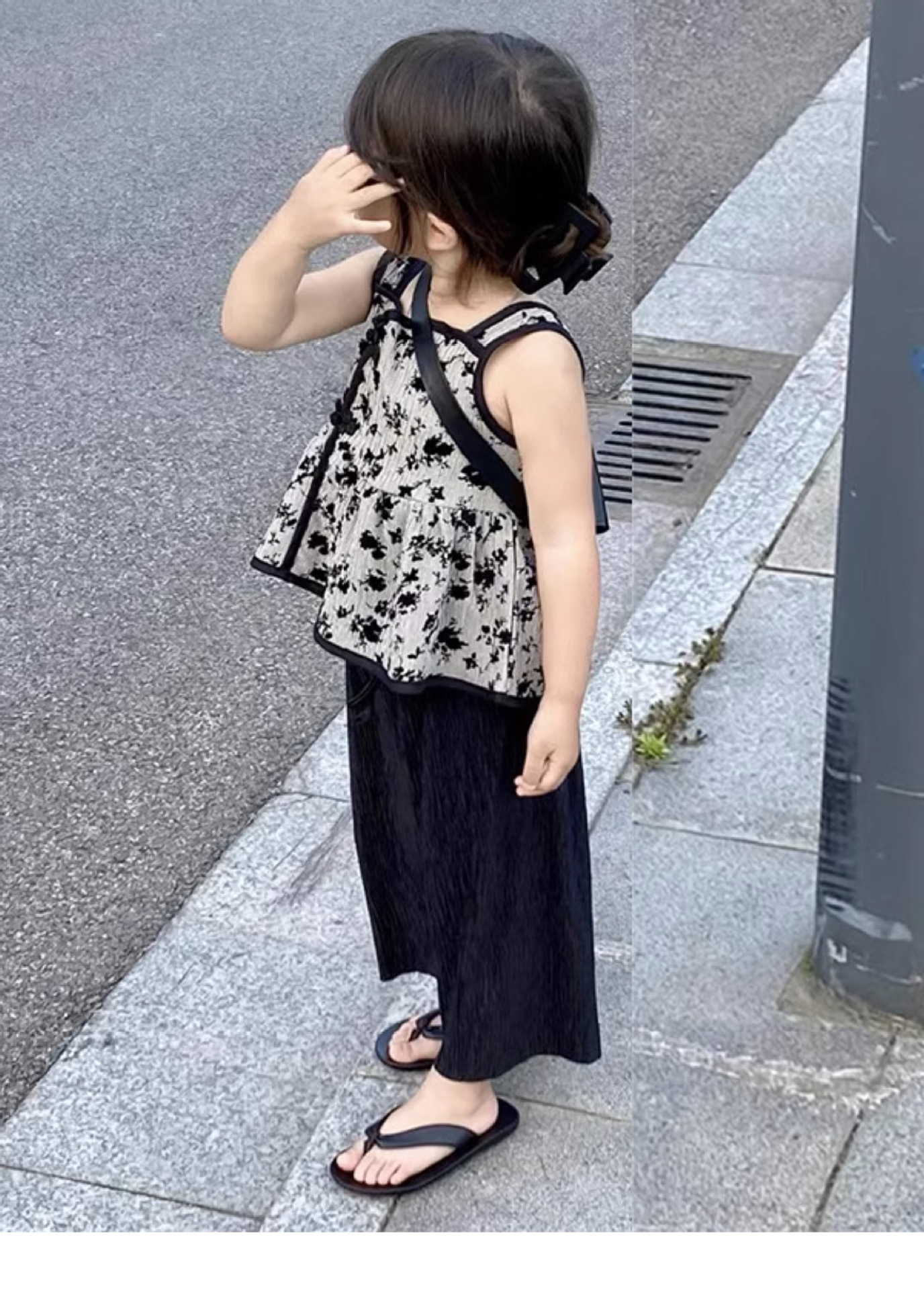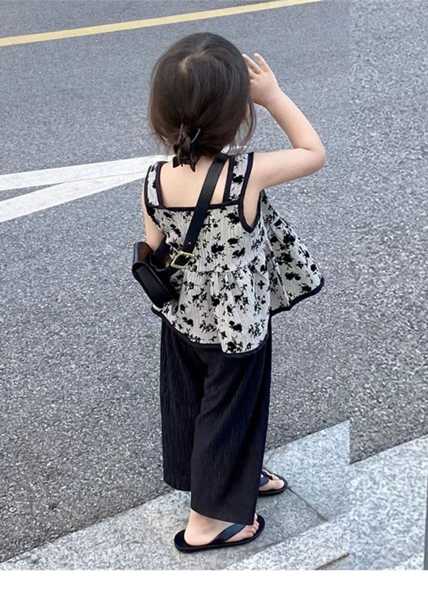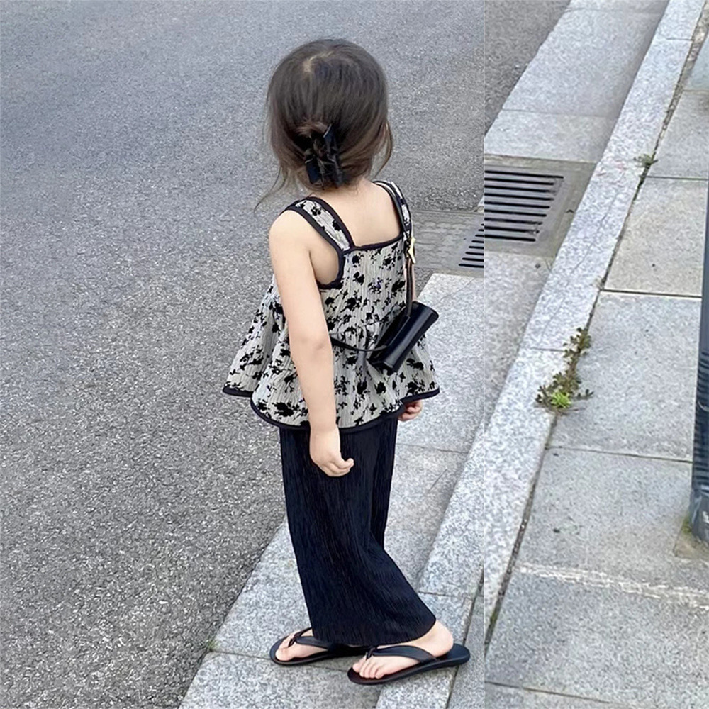 소녀의 여름 세트 새로운 한국어 버전의 꽃 조끼 주름 넓은 다리 바지 2 피스 세트