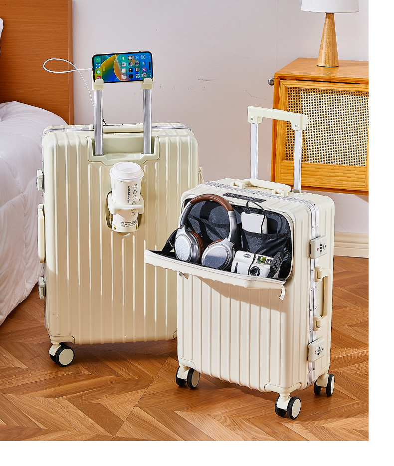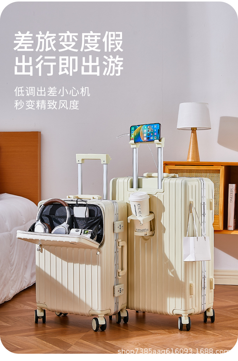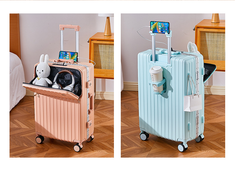 여성용 여행가방 2025년 신형 회전식 바퀴가 달린 트롤리 가방 20inch 소형 기내용 여행가방 남성용 전면 개방형 여행가방