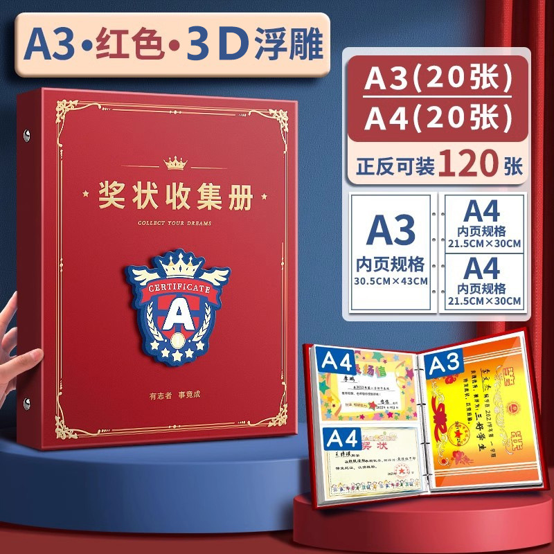 A3 인증서 컬렉션 도서 소년과 소녀 명예 컬렉션 도서 어린이 인증서 분류 아티팩트 높은 색상 값 a4 저장 가방스토어 가기