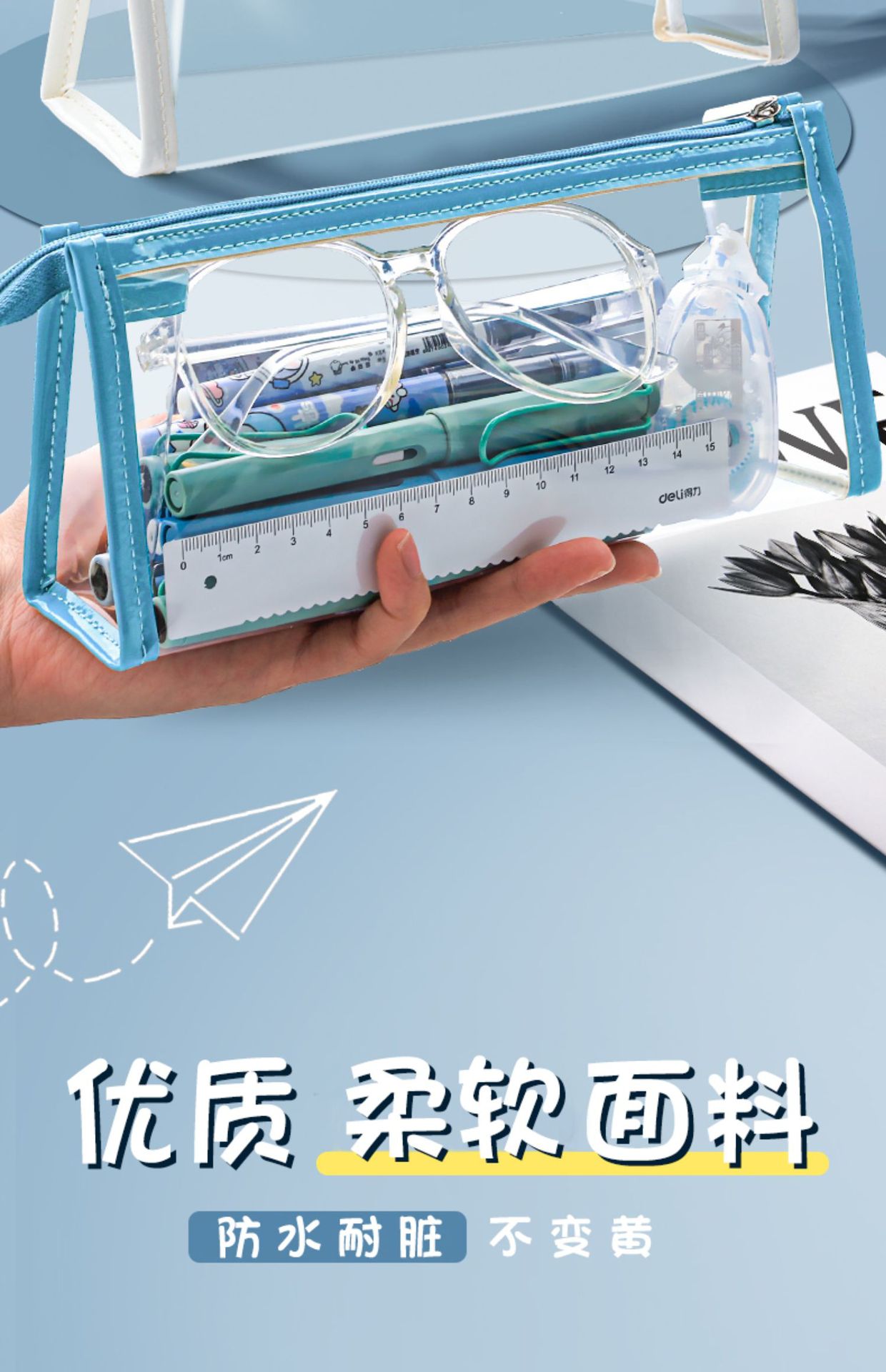 초등학생을위한 시험을위한 투명한 연필 가방 특수 문구 가방 여성 간단한 문구 케이스 연필 가방 보관