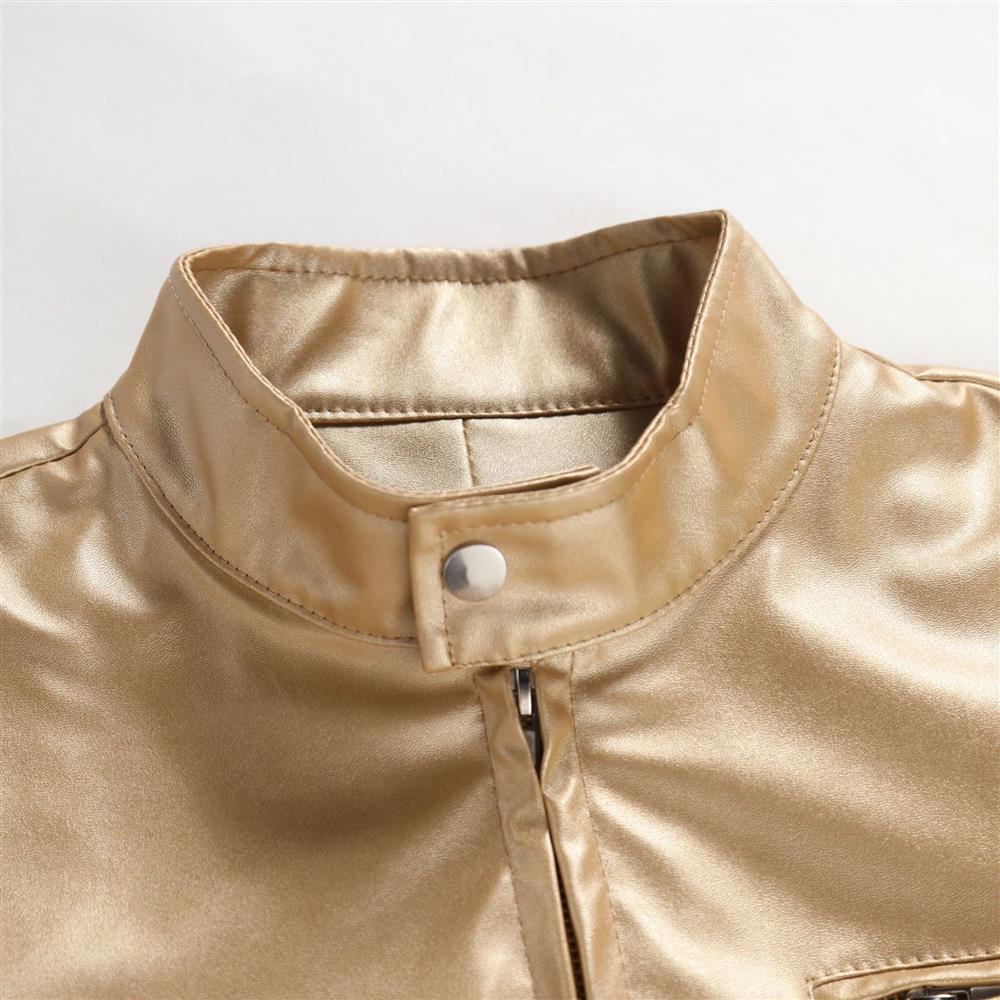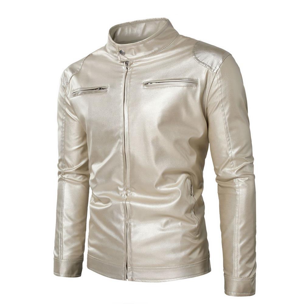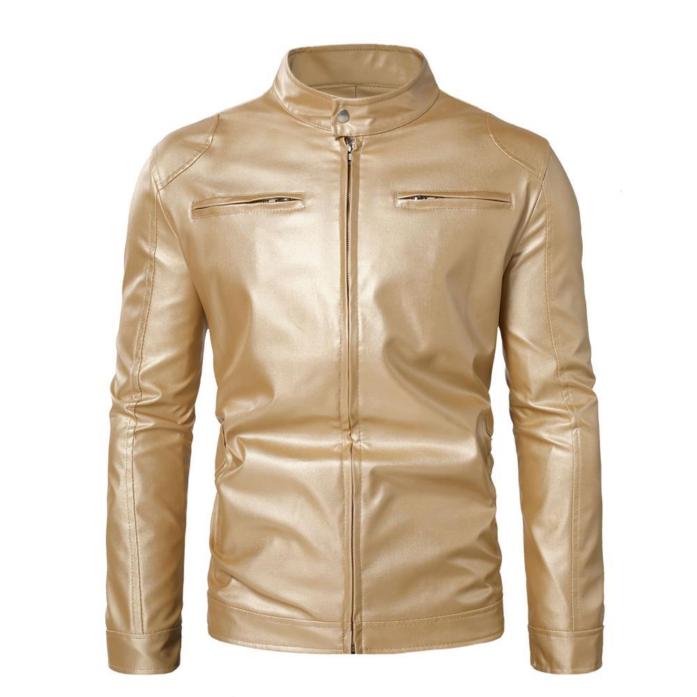 대외 무역 AliExpress 남성 의류 플러스 사이즈 금색과 실버 밝은 색상의 긴 소매 성능 가죽 자켓 코트 남성 의류 1217jk45p65스토어 가기