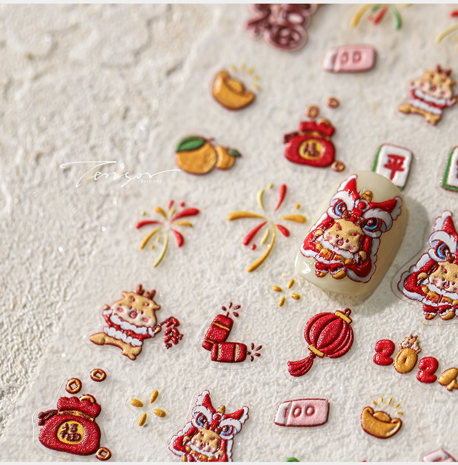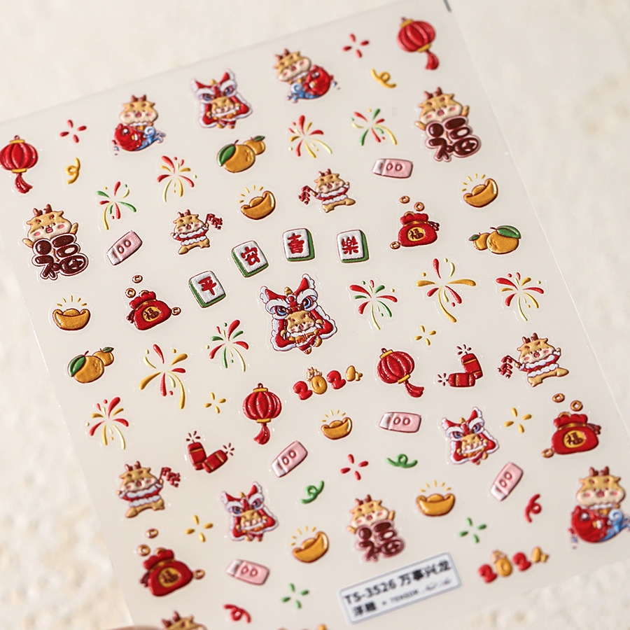 새 공예 텐서 만화 새해 3 차원 네일 스티커 드래곤 백 접착제 네일 스티커 TS-35.25 만 Shi Xinglong