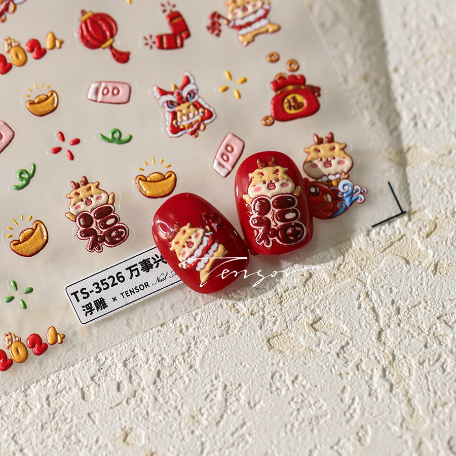 새 공예 텐서 만화 새해 3 차원 네일 스티커 드래곤 백 접착제 네일 스티커 TS-35.25 만 Shi Xinglong스토어 가기