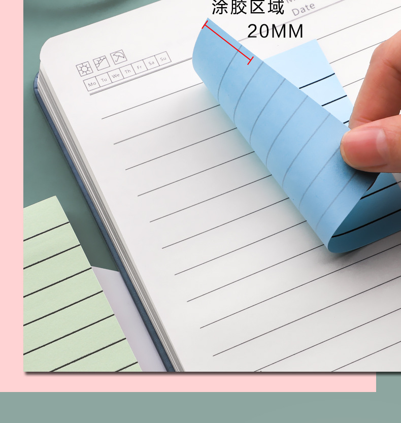 초등학생, 중학생, 스티커, 라벨, 수평선이있는 사무실 노트북, 끈적 끈적한 포스트잇 노트스토어 가기