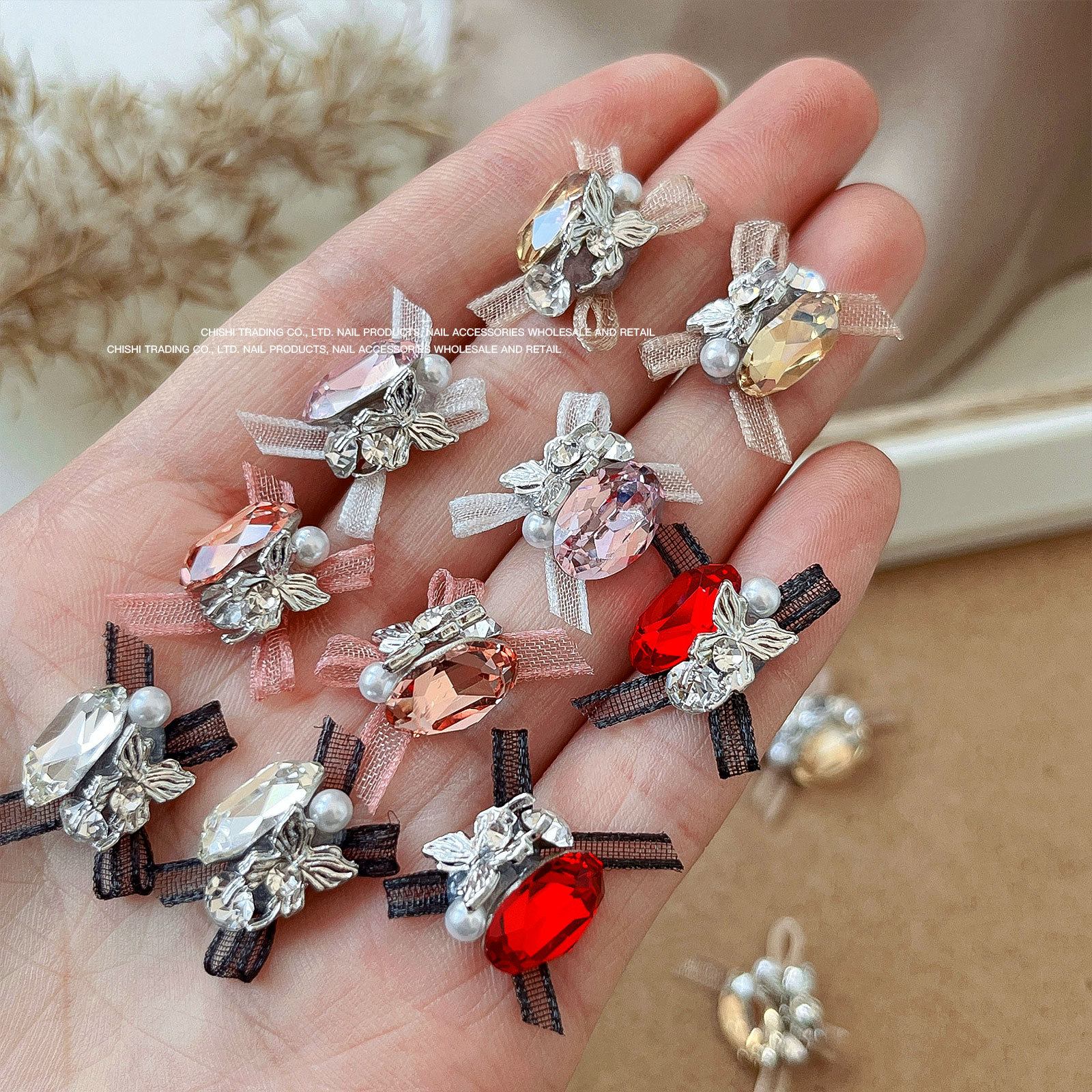 인기있는 온라인 유명 인사 organza 활 비둘기 달걀 타원형 더미 다이아몬드 네일 보석 새로운 네일 장식 도매스토어 가기