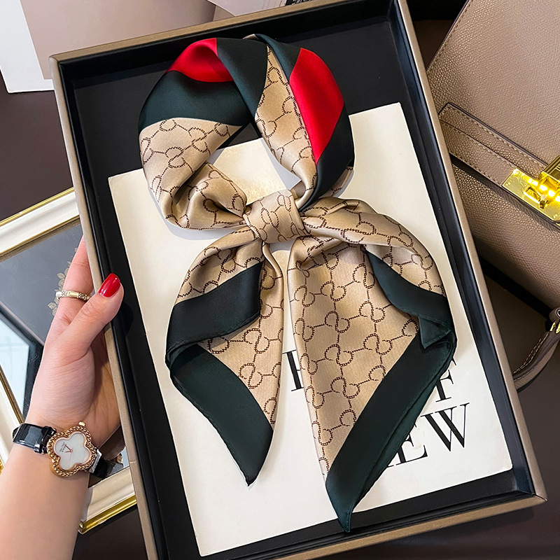 2023 새로운 카레 컬러 작은 스퀘어 스카프 여성 하이 엔드 봄과 가을 어울리는 셔츠 세트 목 보호 얇은 스카프스토어 가기