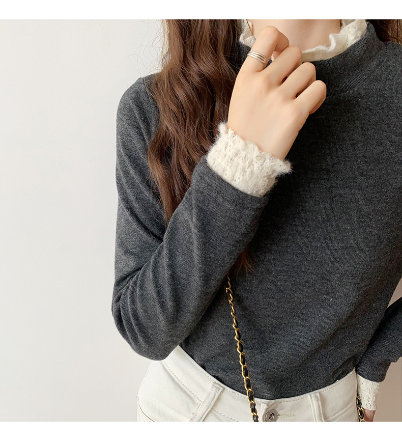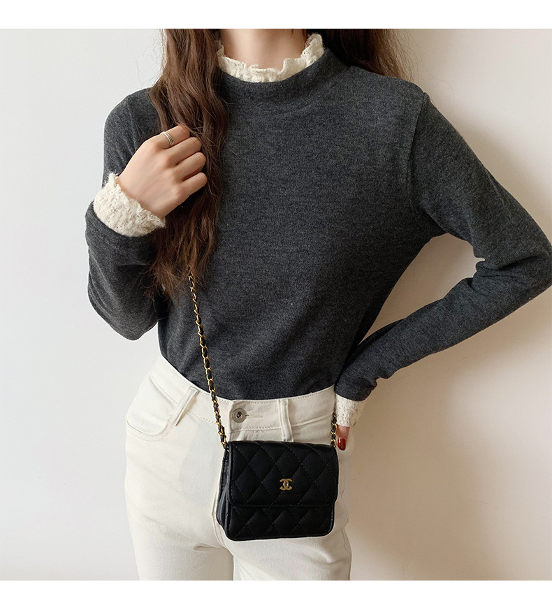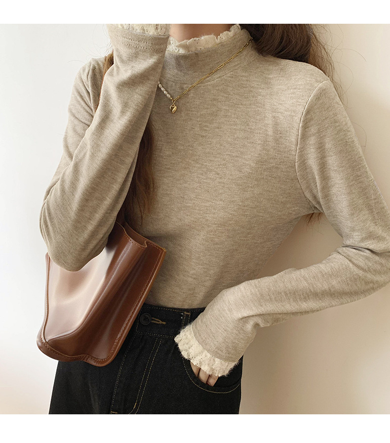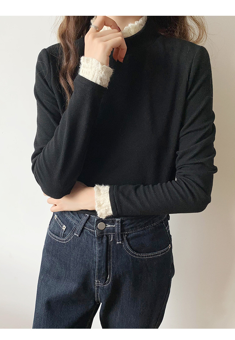 시크 서양식 하프 터틀넥 레이스 이너 탑 여성용 가을과 겨울 따뜻한 캐시미어 바닥 셔츠 긴팔 티셔츠스토어 가기