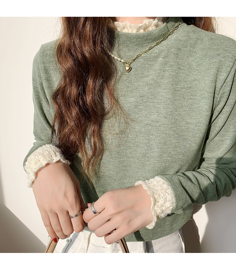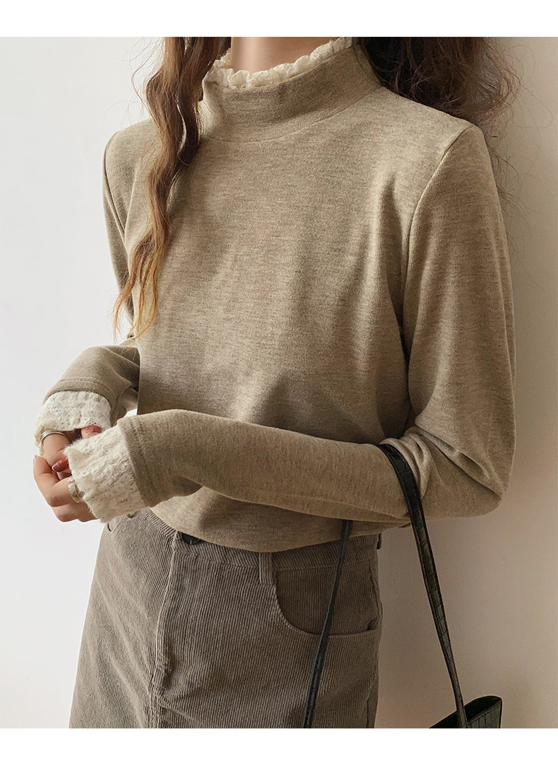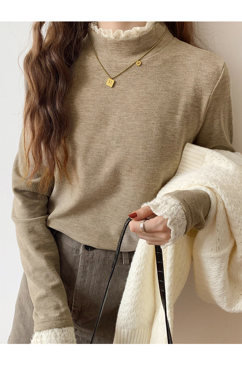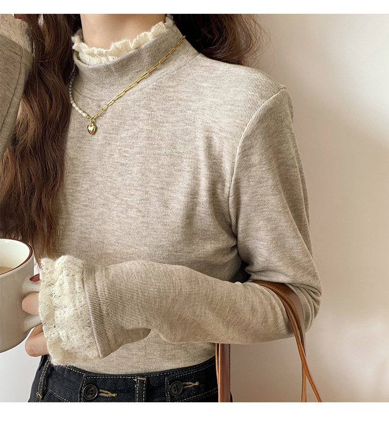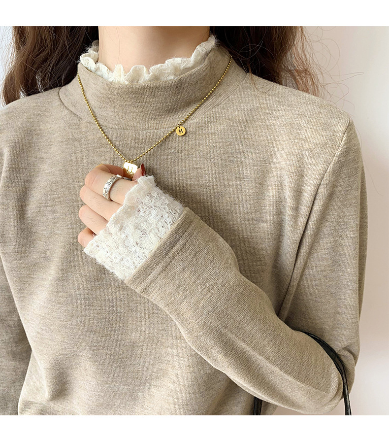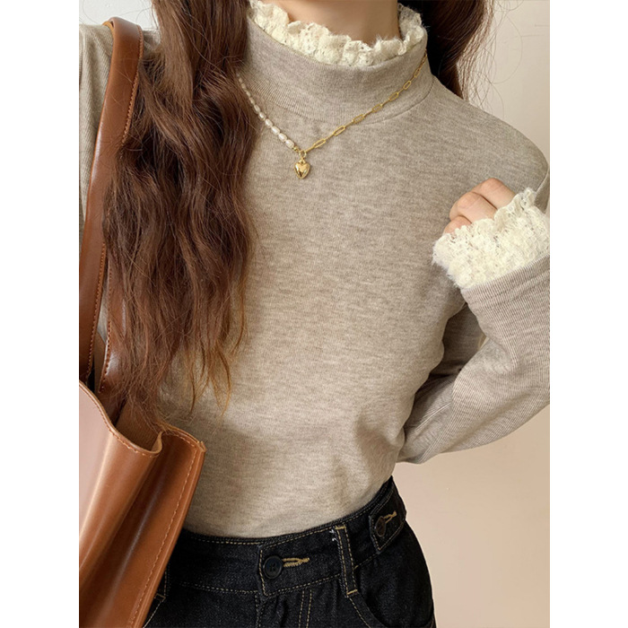 시크 서양식 하프 터틀넥 레이스 이너 탑 여성용 가을과 겨울 따뜻한 캐시미어 바닥 셔츠 긴팔 티셔츠