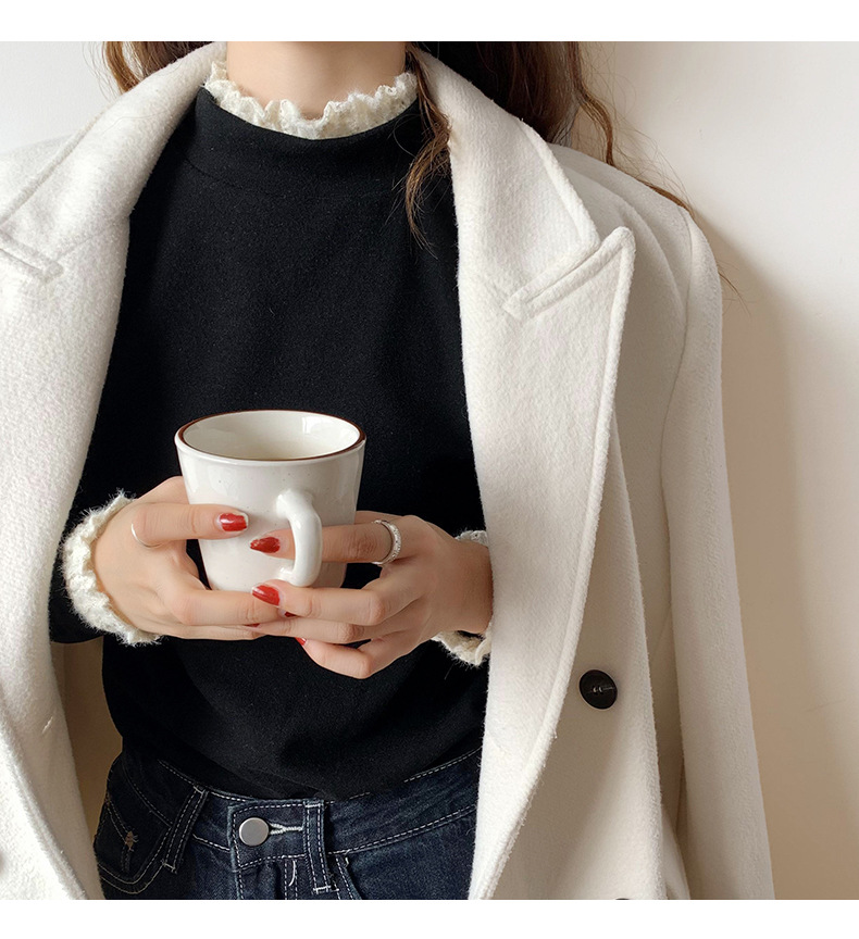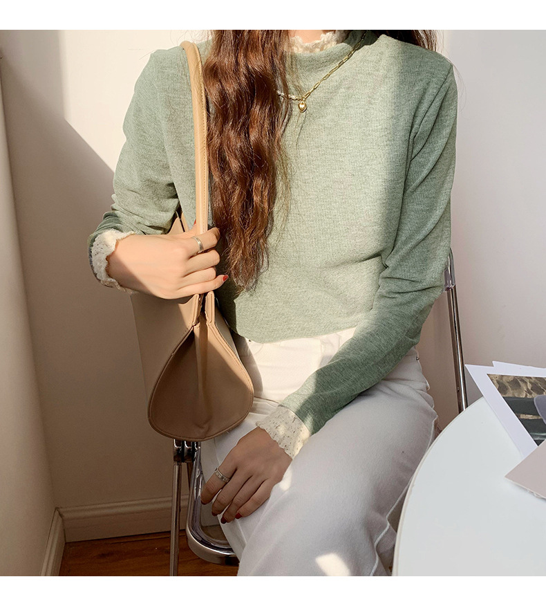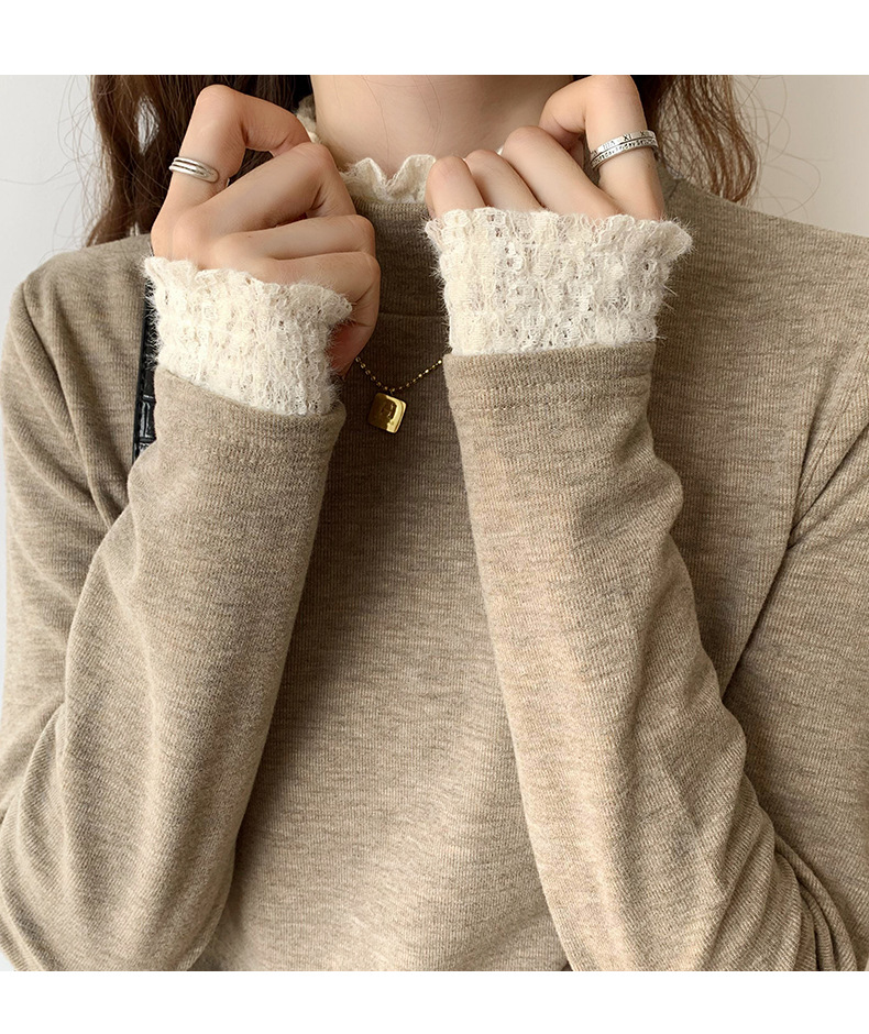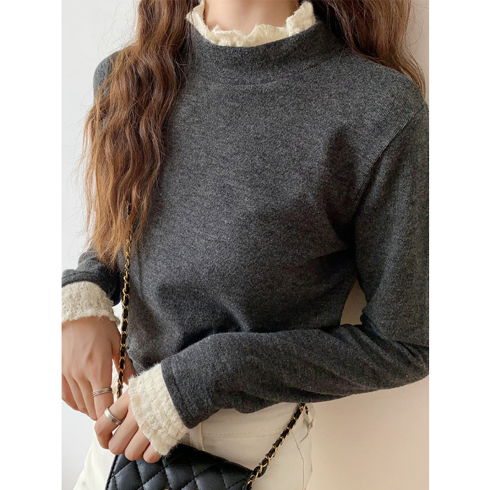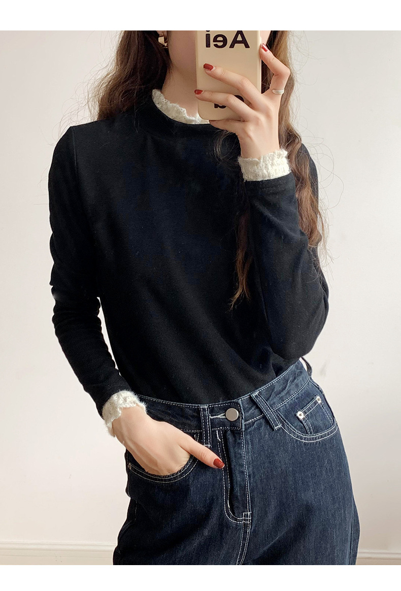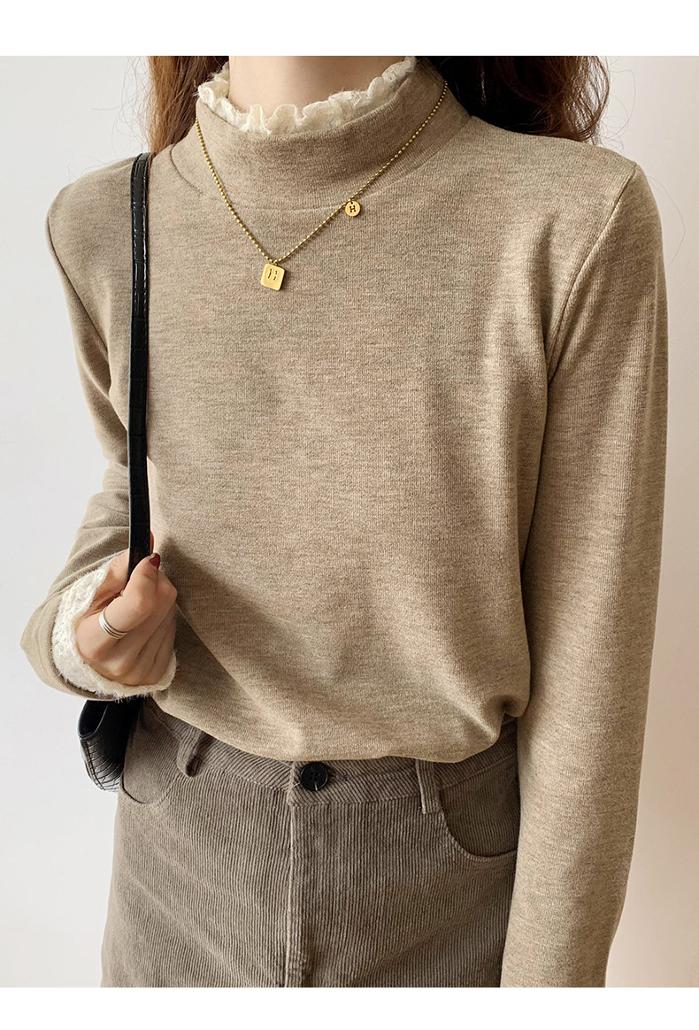 시크 서양식 하프 터틀넥 레이스 이너 탑 여성용 가을과 겨울 따뜻한 캐시미어 바닥 셔츠 긴팔 티셔츠