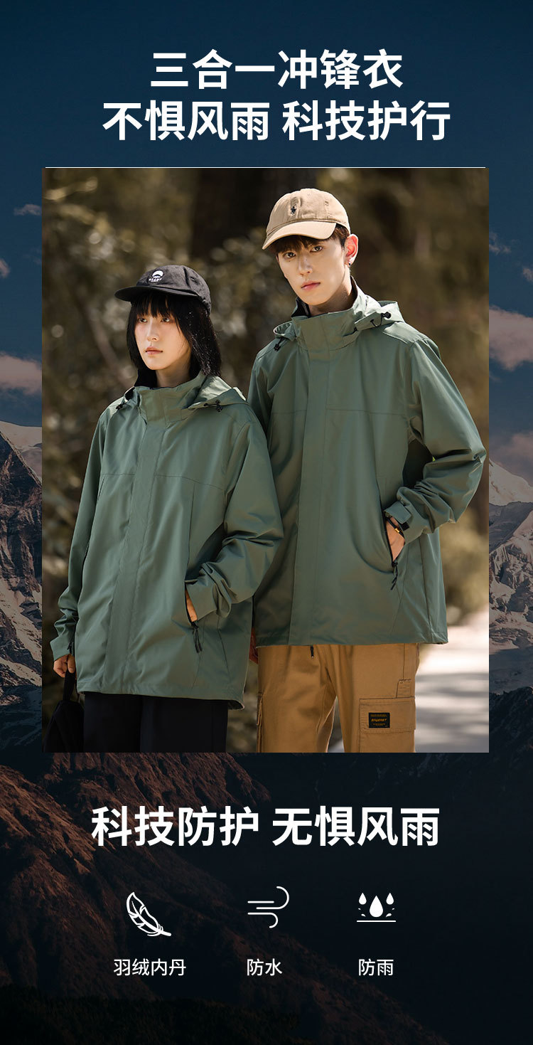 산 야외 등산 겨울 재킷 남성과 여성의 3 대 1 분리 가능한 새로운 국가 표준 90 흰색 오리 다운 따뜻한 재킷스토어 가기
