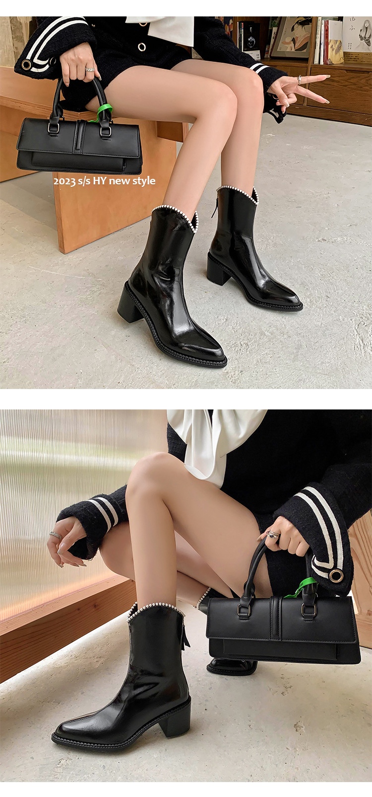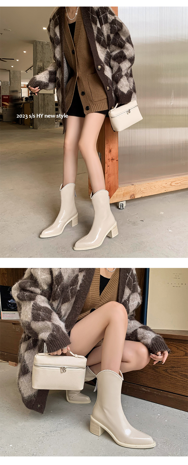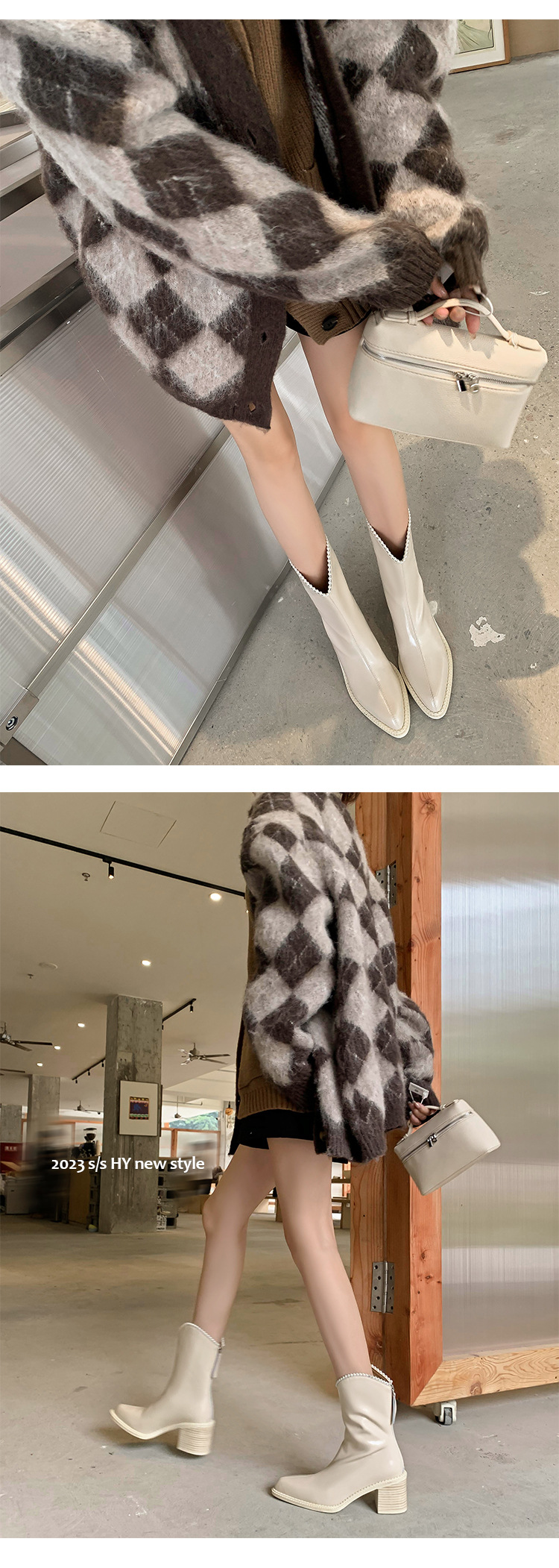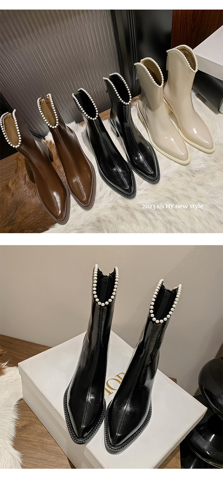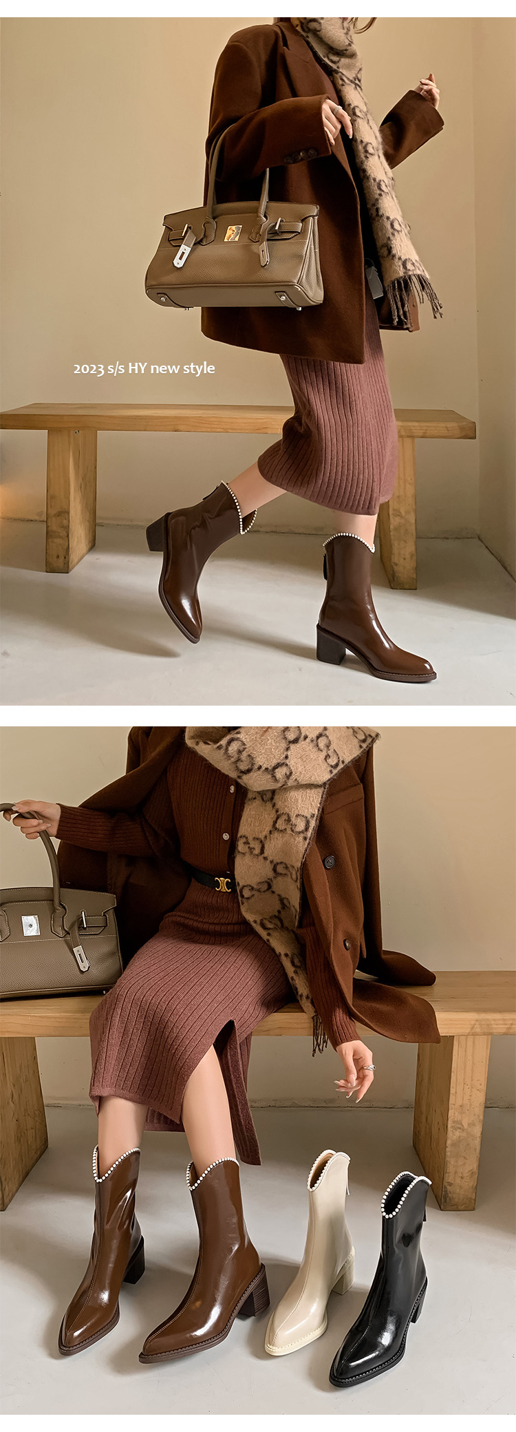 정품 가죽 뾰족한 발가락 두꺼운 하이힐 부츠 다크 브라운 v 입 롱 부츠 여성 작은 높이 증가 얇은 부츠 화이트 하이 부츠스토어 가기