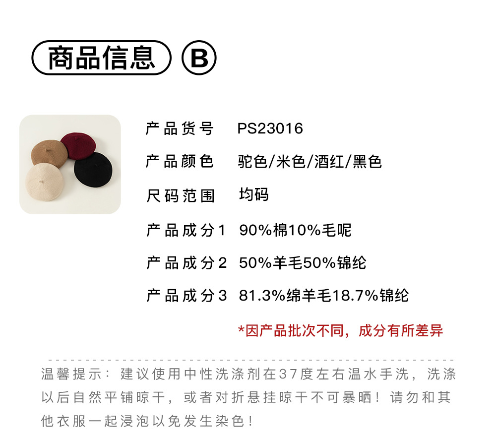 베이베이시 어린이 액세서리 가을과 겨울 어린이 모자 소녀의 단색 베레모 서양식 PS23016