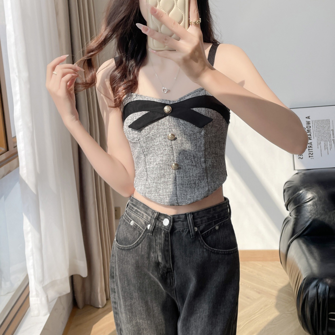 새로운 섹시한 뜨거운 소녀 샤넬 스타일 버튼 디자인 캐미솔 여성의 내부 스트랩 가슴 패드 튜브 탑