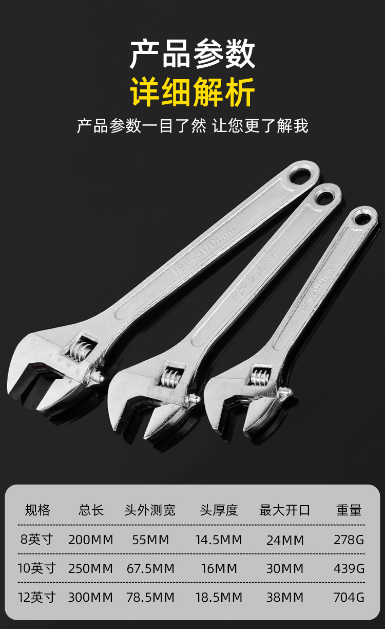 하드웨어 도구 10inch 조절식 렌치 산업용 등급 12inch 오픈 렌치 조절식 렌치 8inch 조절식 렌치 액세서리스토어 가기