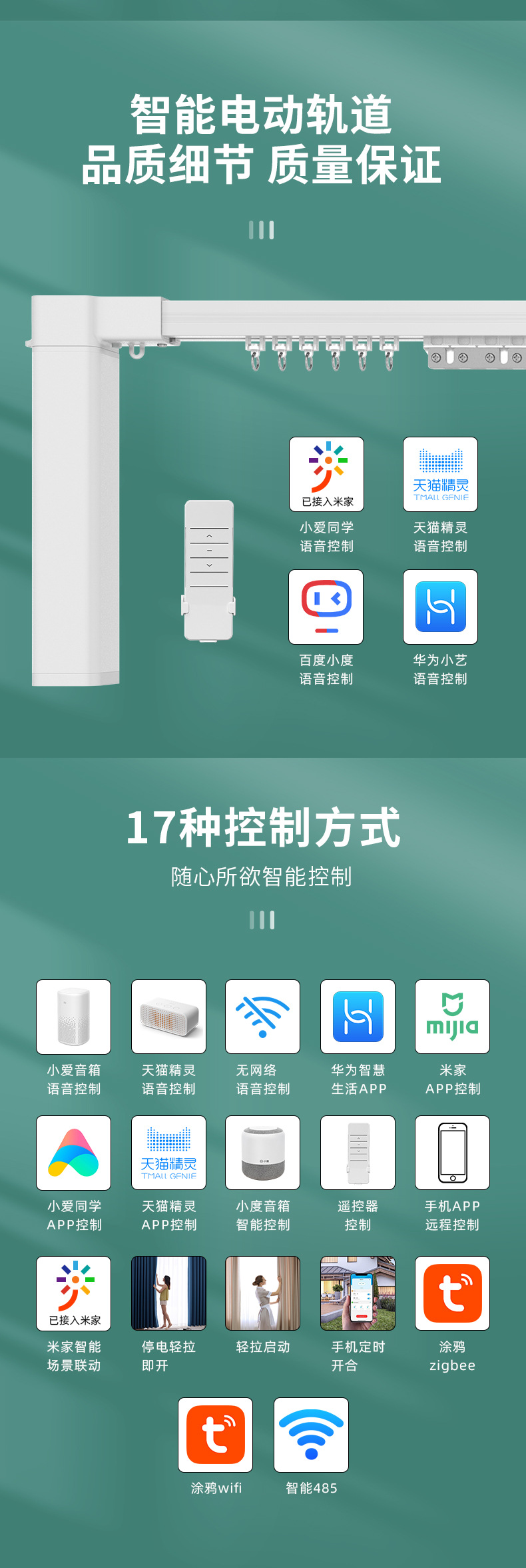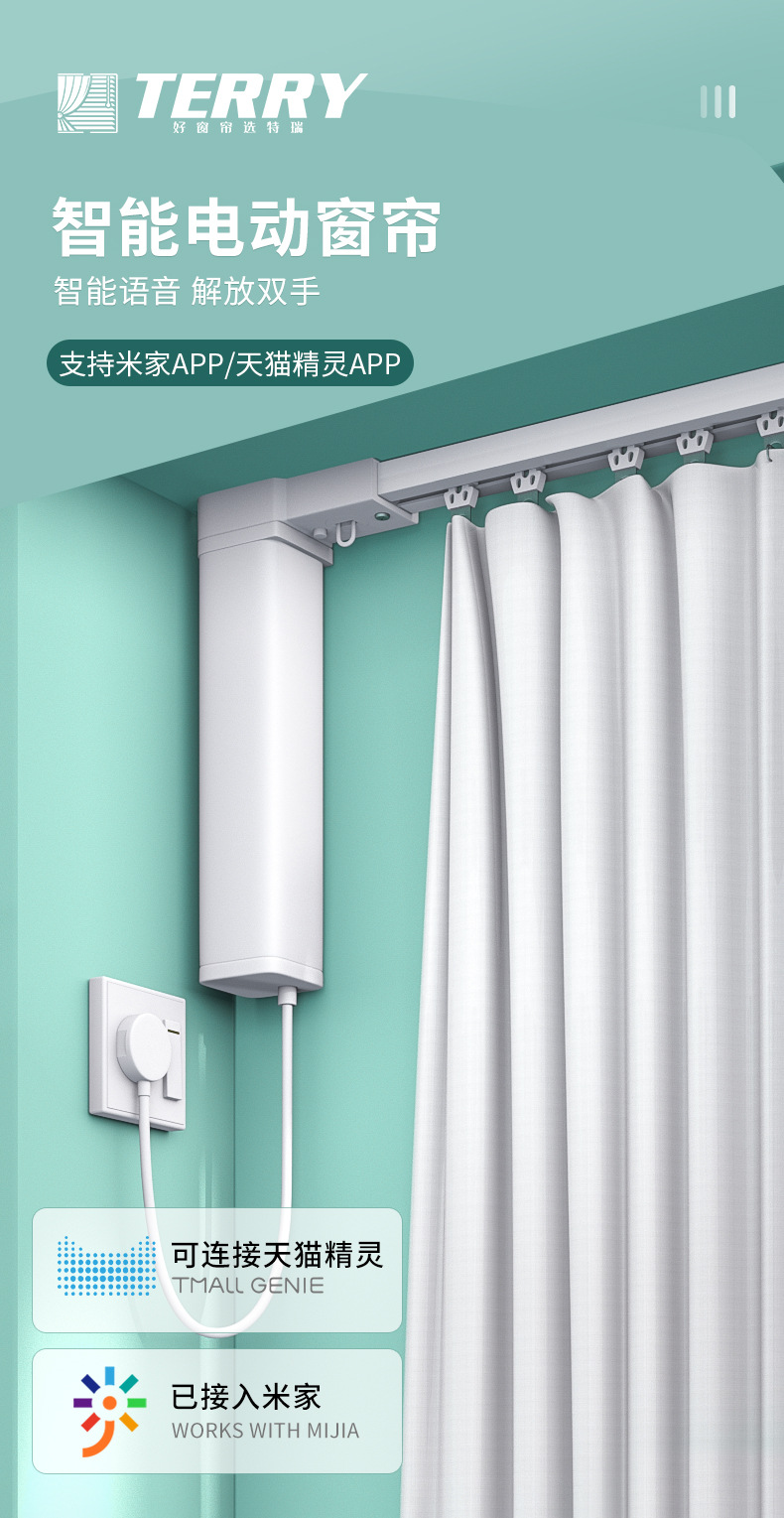 테리 전기 커튼 트랙 Xiaomi TOT Mijia APP 제어 전기 개방 및 폐쇄 커튼에 연결된 지능형 커튼 전체 세트스토어 가기