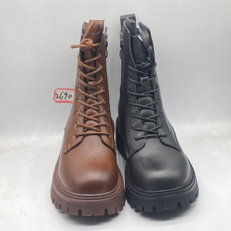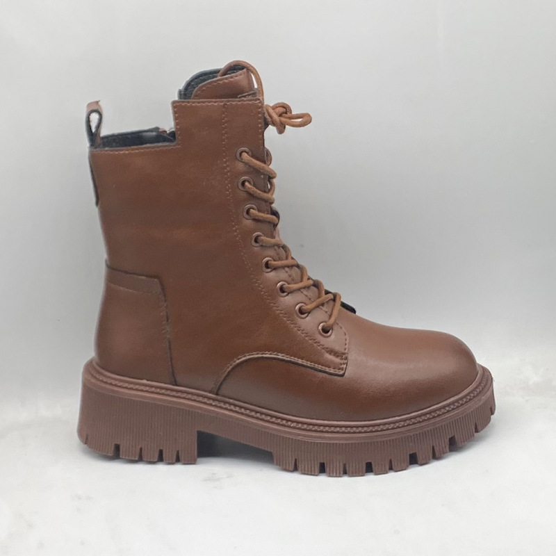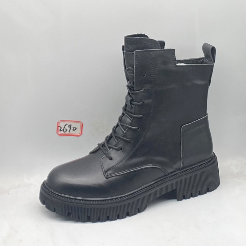 쇼핑몰 캐비닛 첫 번째 레이어 소 가죽 마틴 부츠 여성용 겨울 기모 두꺼운 간단한 두꺼운 바닥 둥근 발가락 짧은 부츠스토어 가기