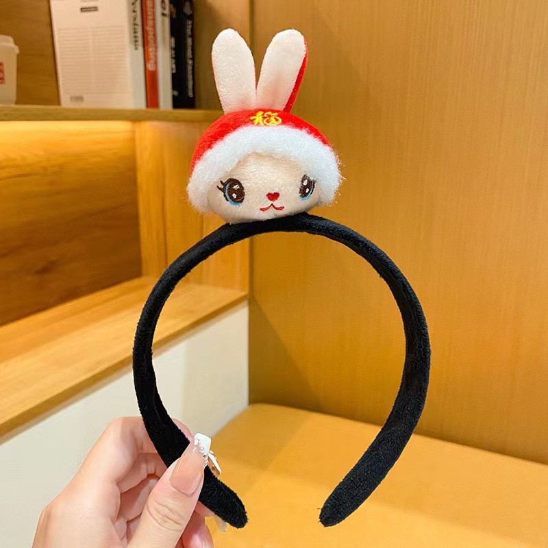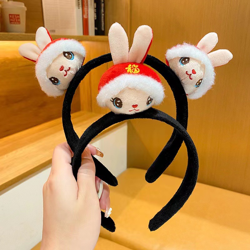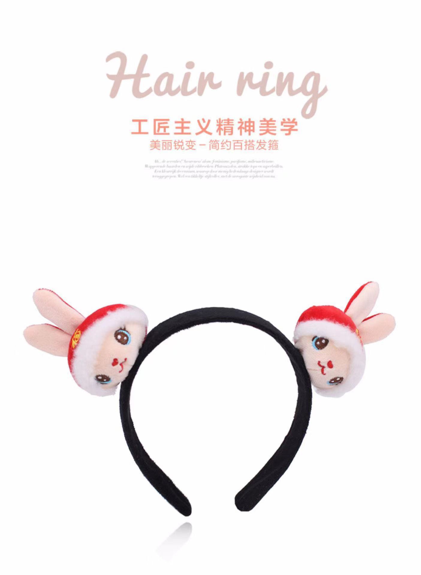 토끼 머리띠 귀여운 작은 빨간 승마 후드 붉은 새해 새해 첫날 여성 연례 회의 활동 액세서리 어린이 머리핀 머리띠 헤어 액세서리