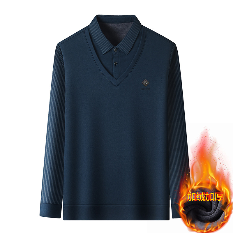 가을과 겨울 새로운 남성의 붉은 출생 년 옷깃 가짜 투피스 탑 기모 자카드 폴라 플리스 원피스 벨벳 따뜻한스토어 가기