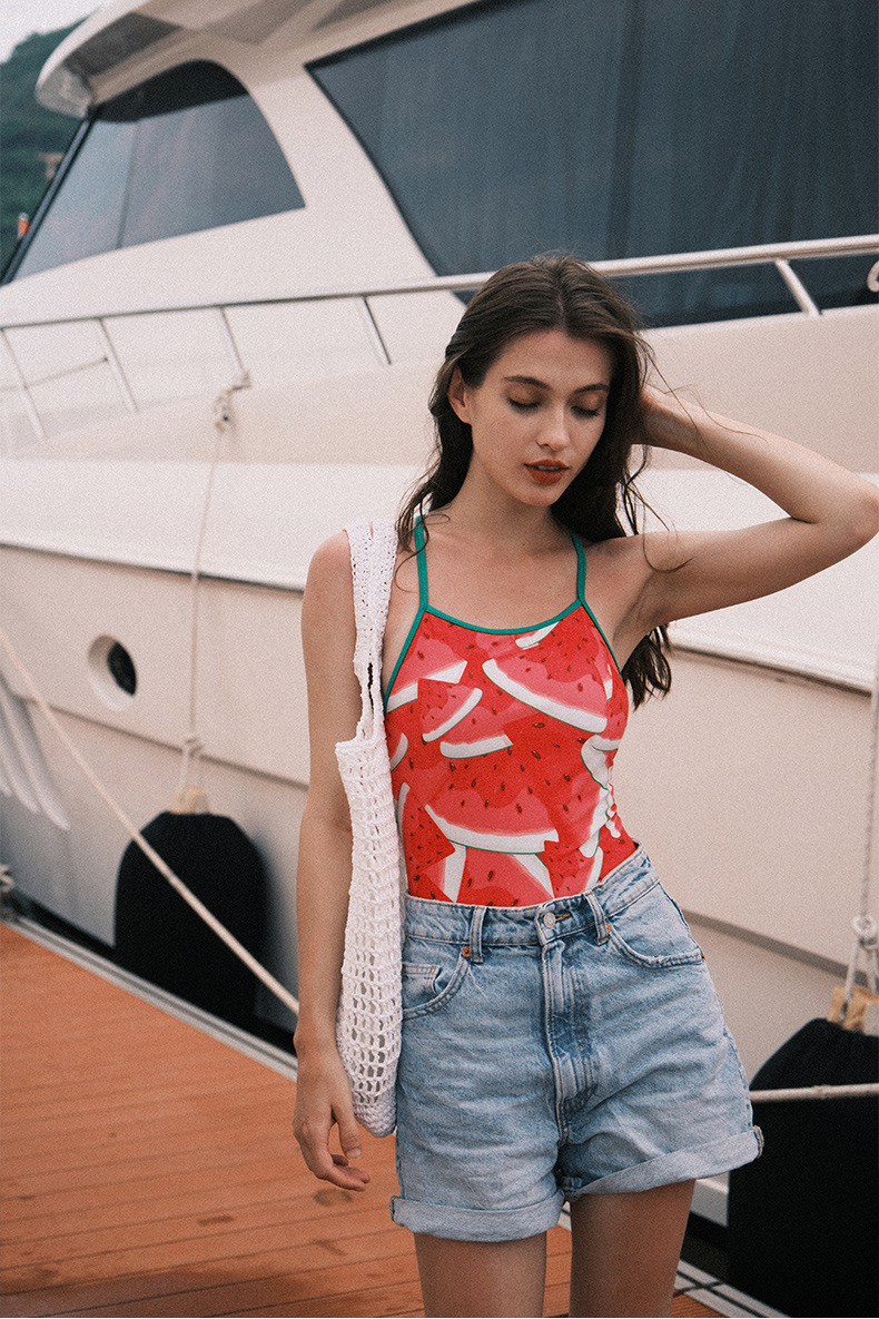 수영복 여성의 새로운 스트랩 배꼽 슬리밍 온천 수영복 원피스 삼각형 전문 레이싱 훈련 수영복스토어 가기