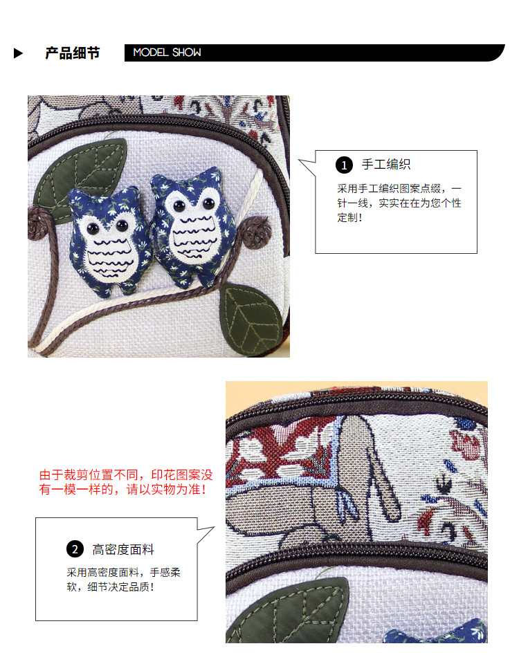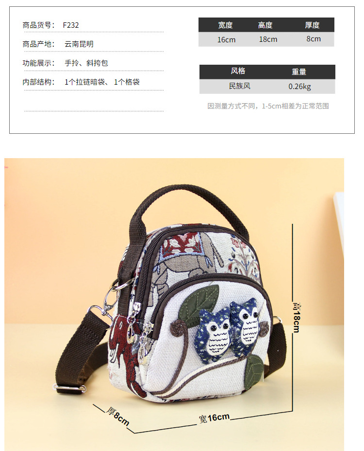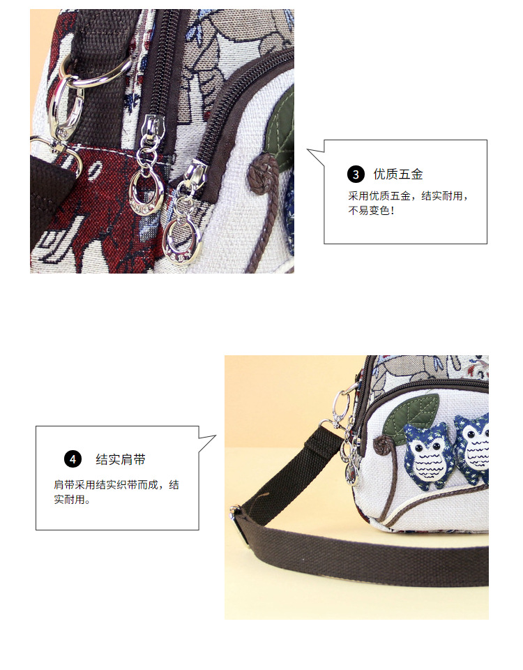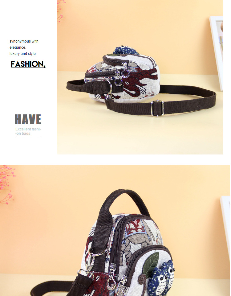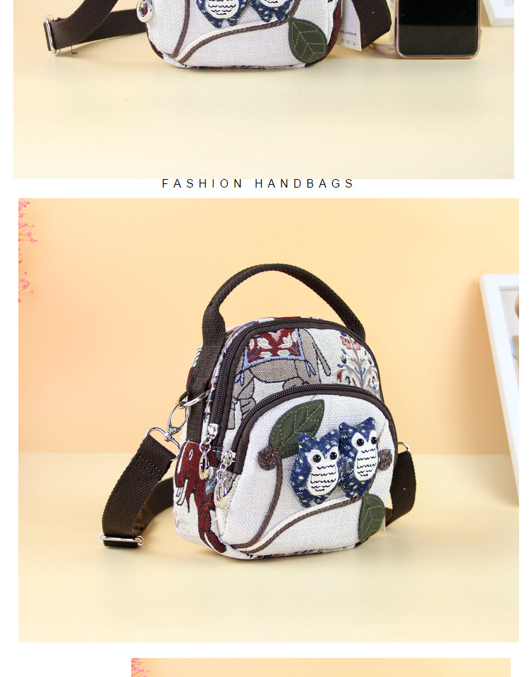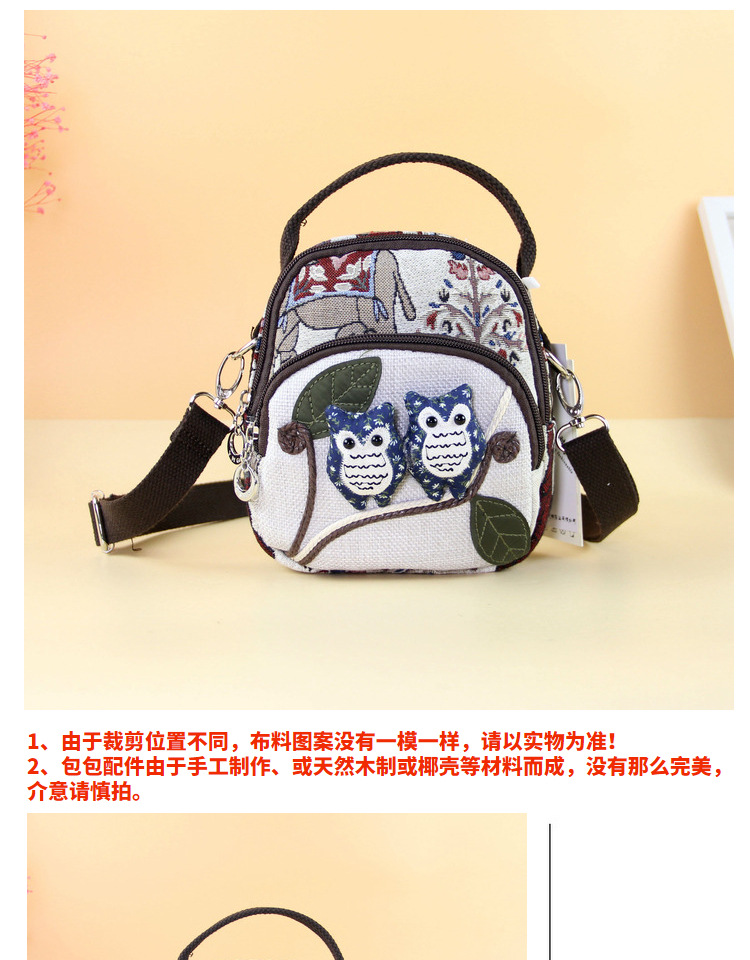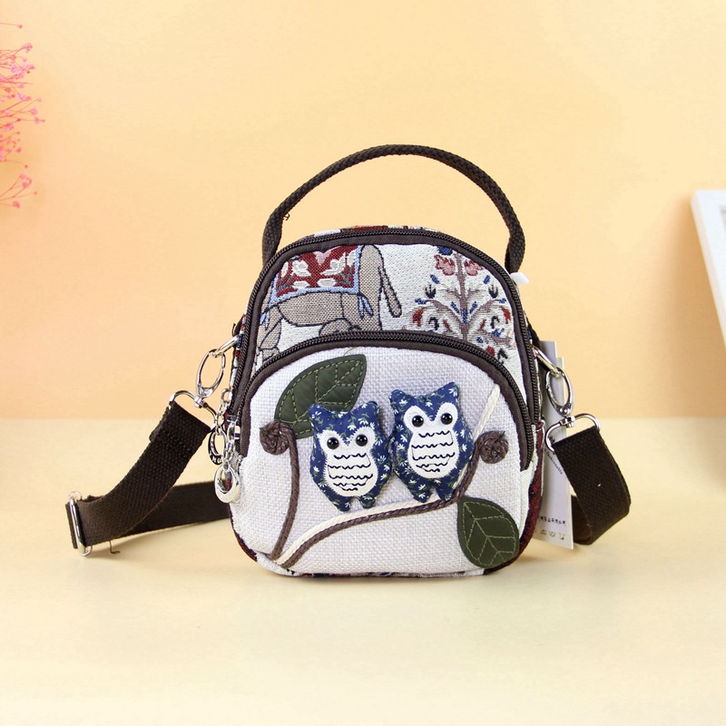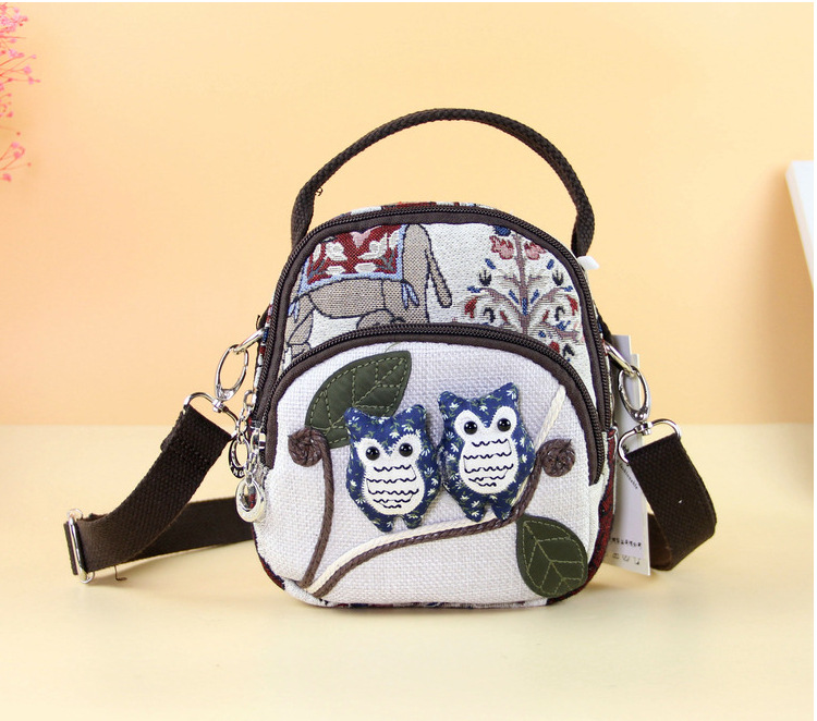 패브릭 올빼미 크로스 바디 백 민족 스타일 국가 트렌드 문학 스타일 경량 캐주얼 휴대용 크로스 바디 휴대폰 가방 F232