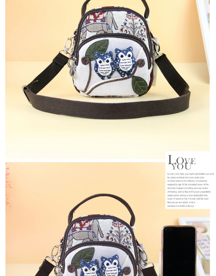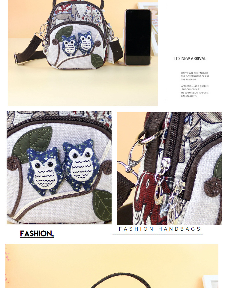 패브릭 올빼미 크로스 바디 백 민족 스타일 국가 트렌드 문학 스타일 경량 캐주얼 휴대용 크로스 바디 휴대폰 가방 F232스토어 가기