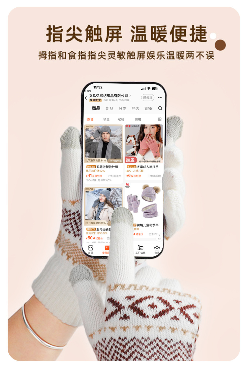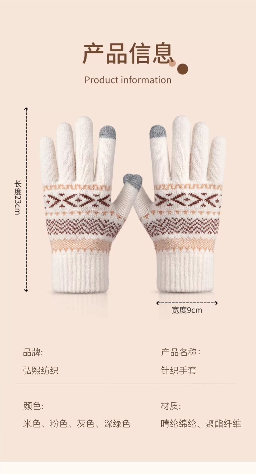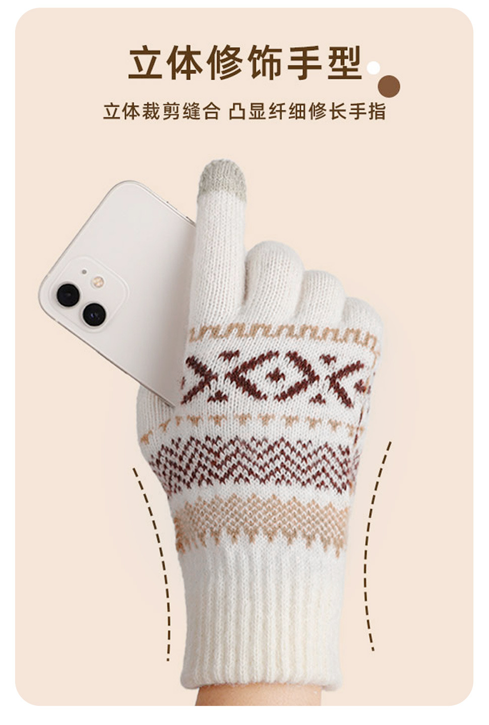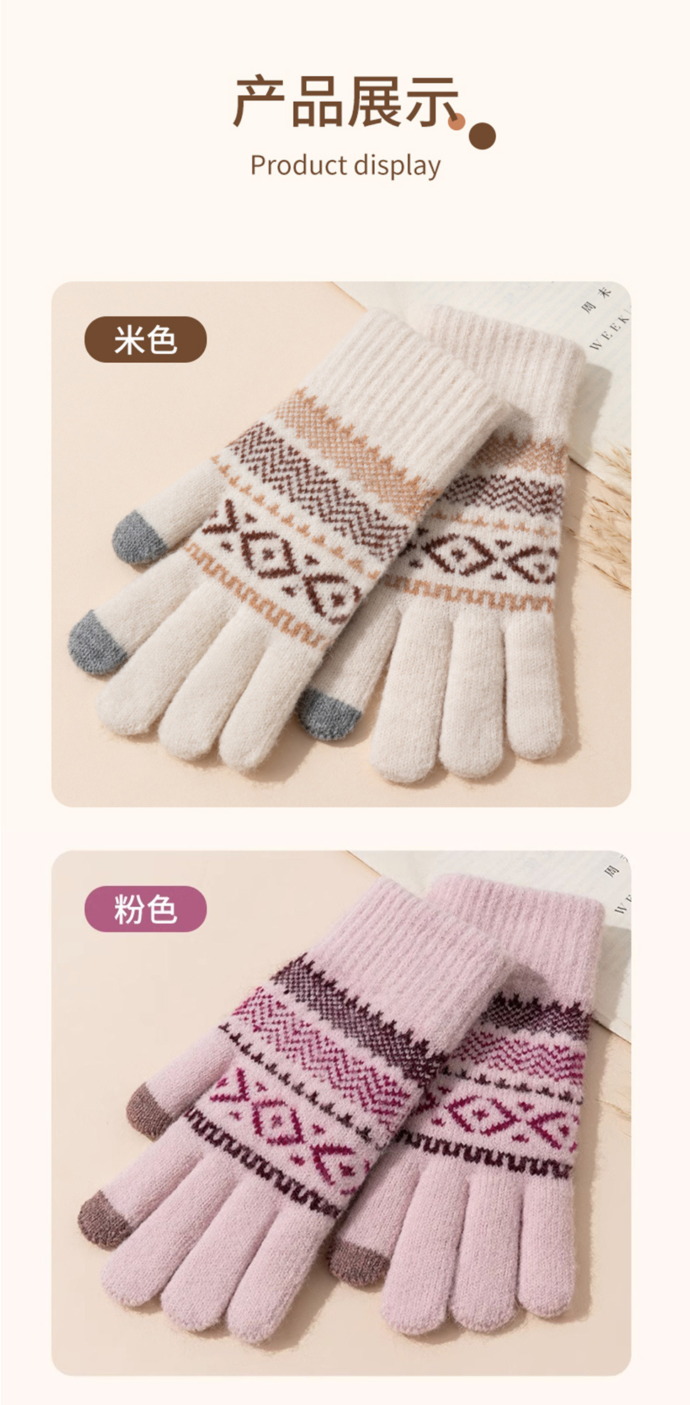 日系秋冬爆款羊毛撞色毛线针织手套复古提花加绒骑车触屏保暖手套