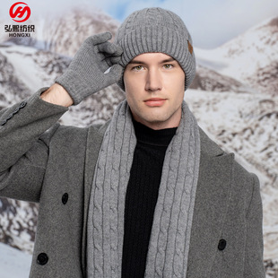 亚马逊新款针织帽子围巾手套三件套装冬季女防寒保暖围巾三件套男