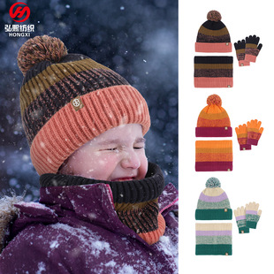亚马逊新款冬天儿童针织手套帽子围脖三件套装户外保暖帽子三件套