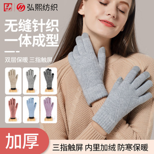 跨境爆款成人女男冬季双层触屏针织手套加绒加厚防寒骑行保暖手套