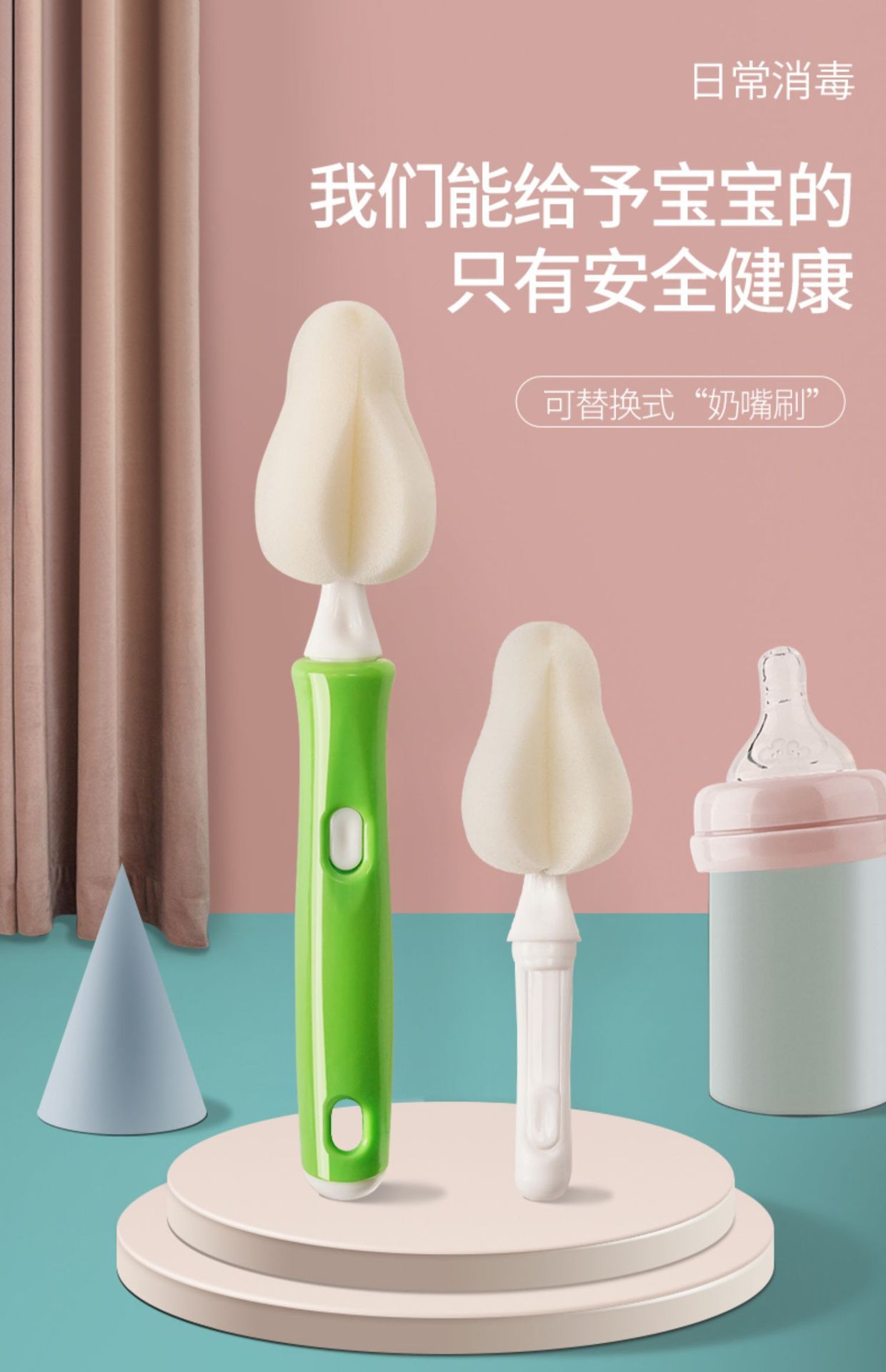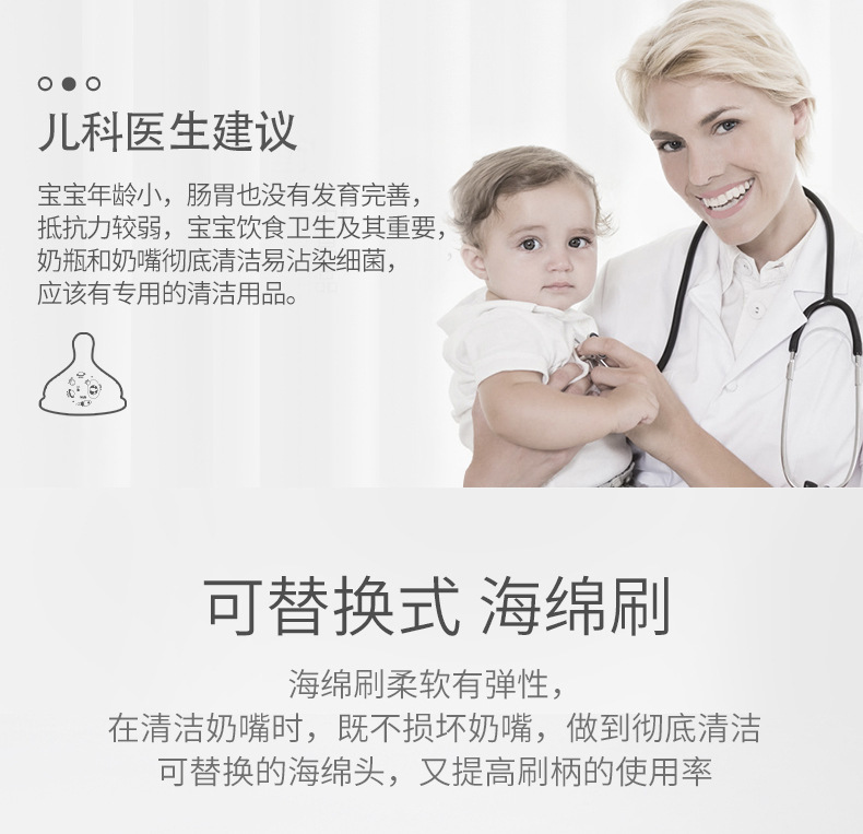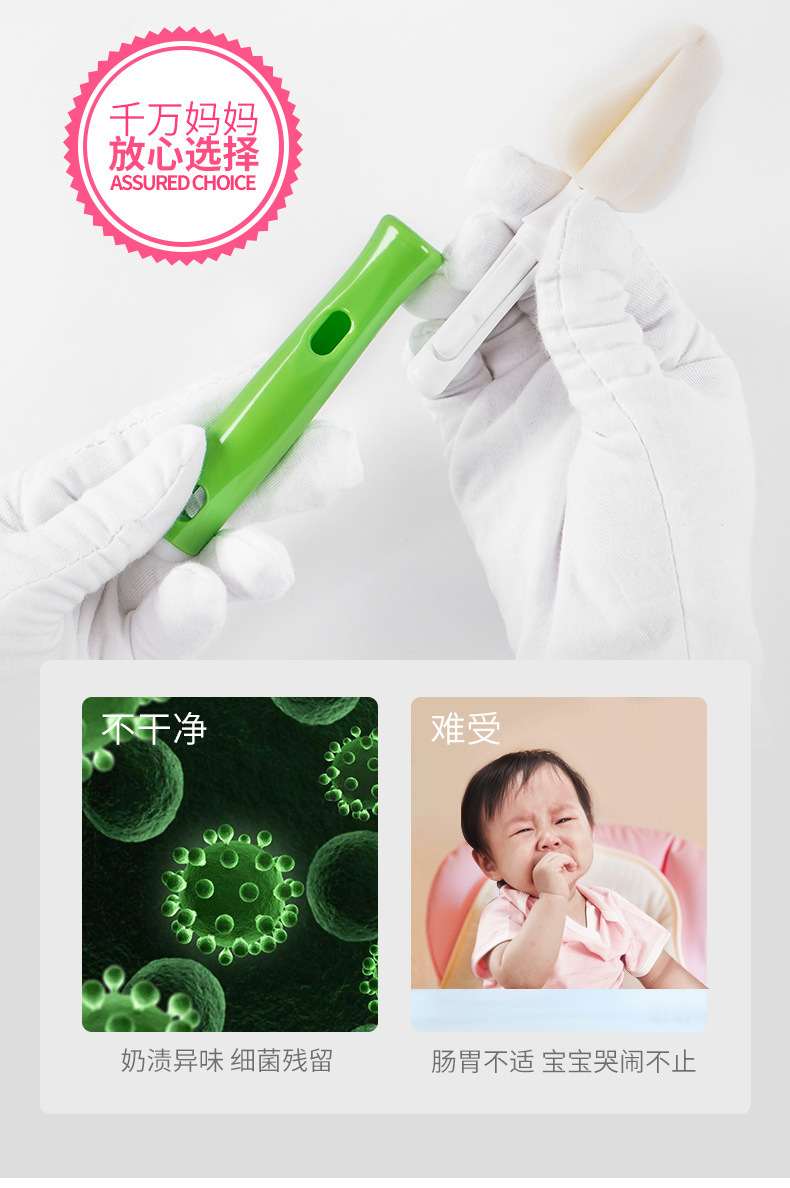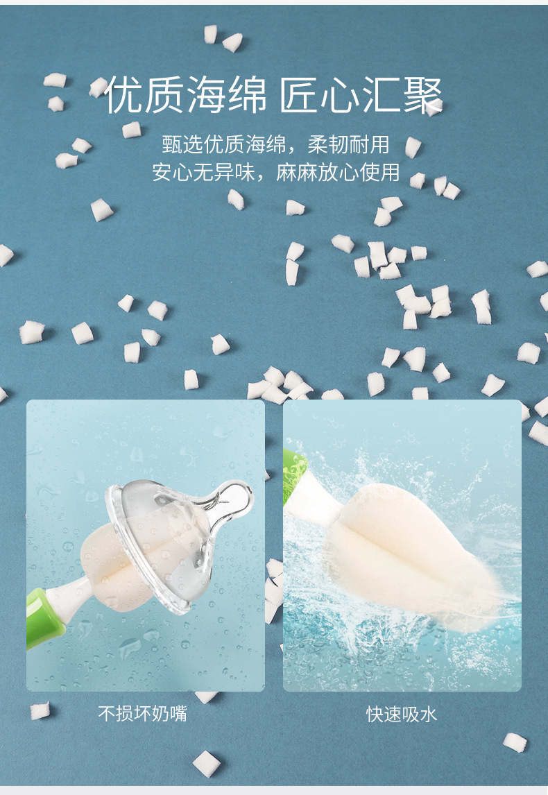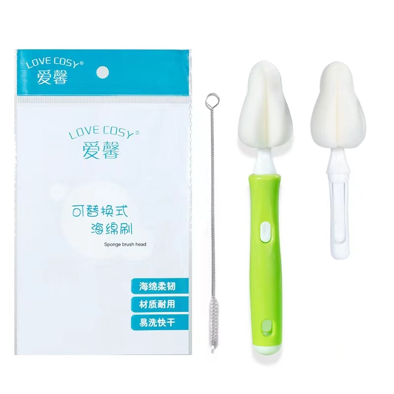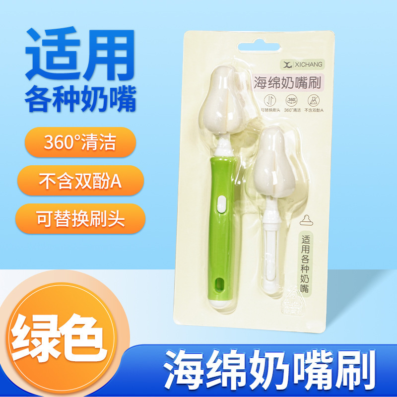 • 교체 가능한 젖꼭지 세트 (흰색 스폰지 녹색 손잡이) 물집 포장