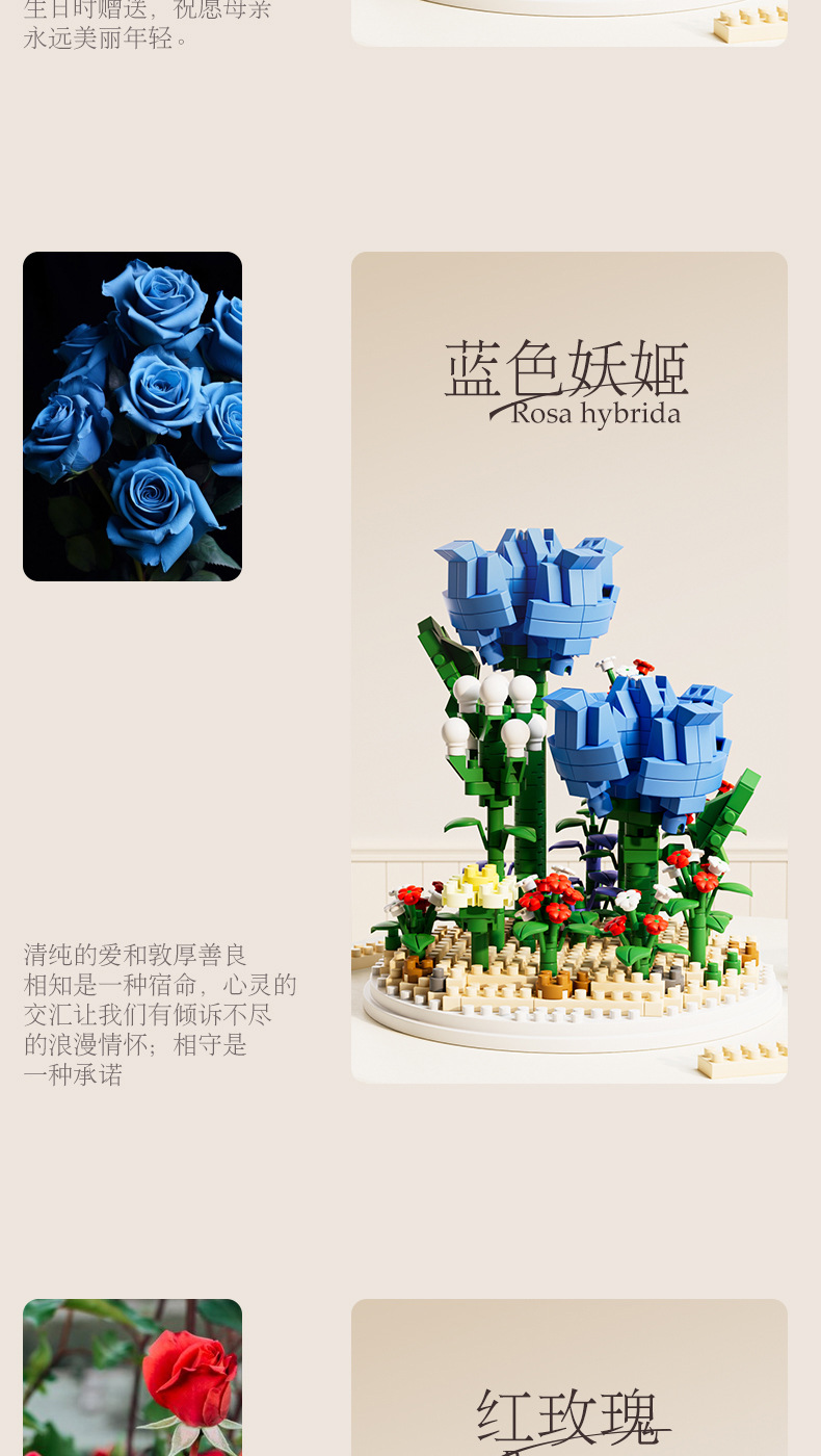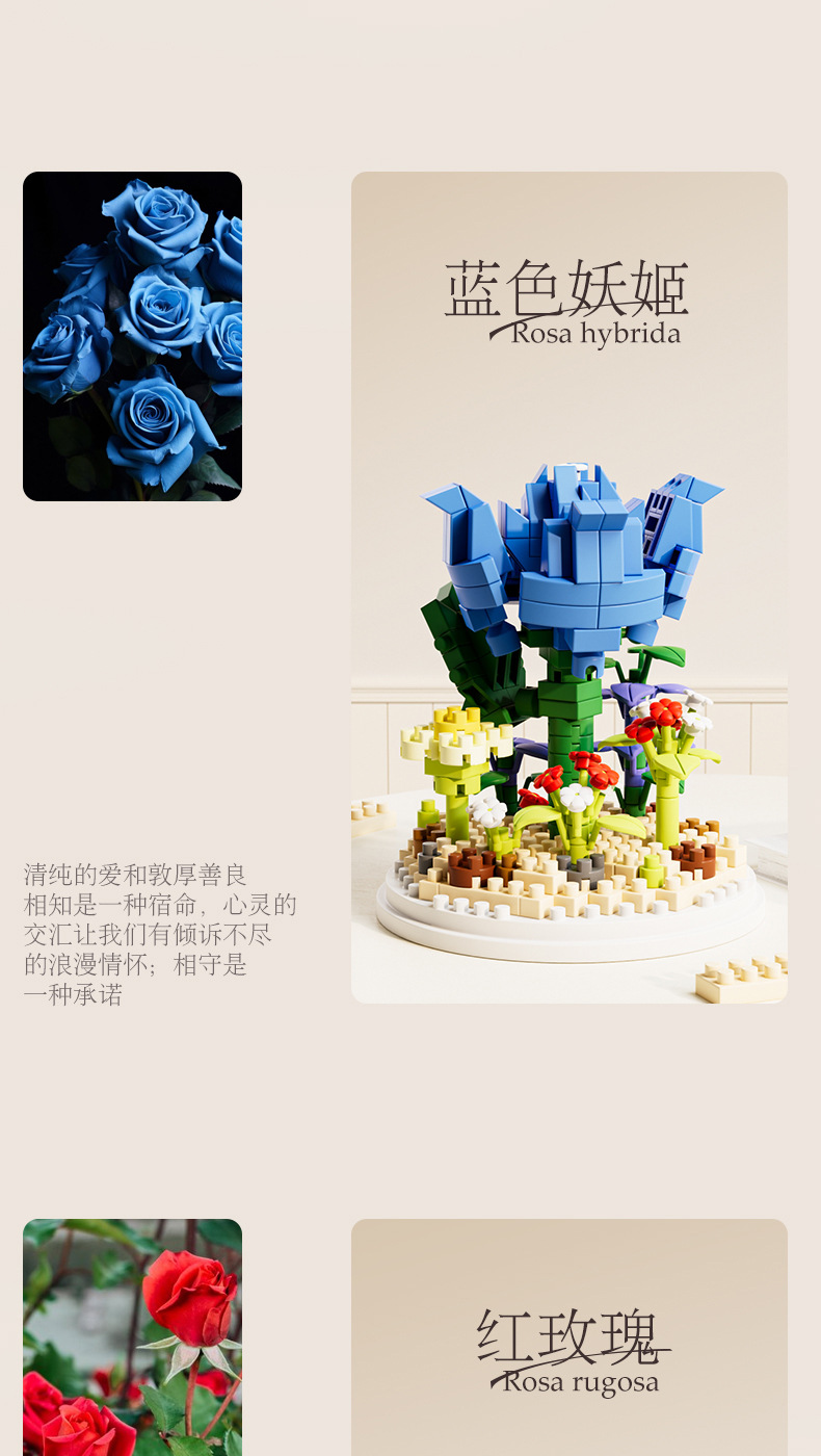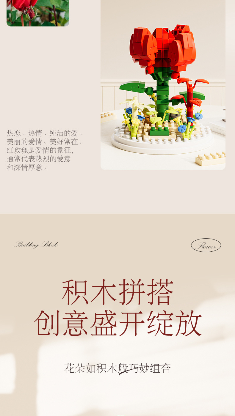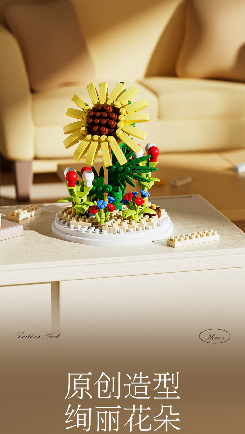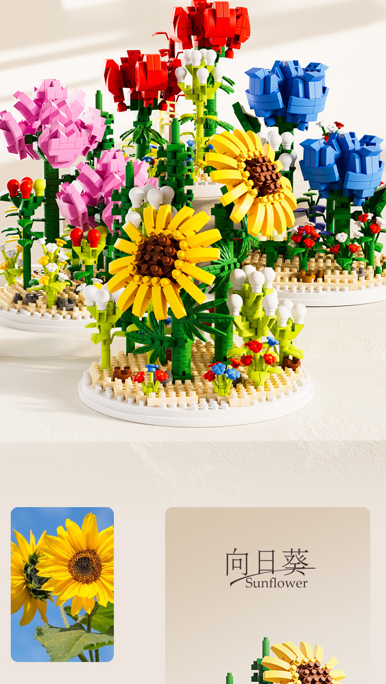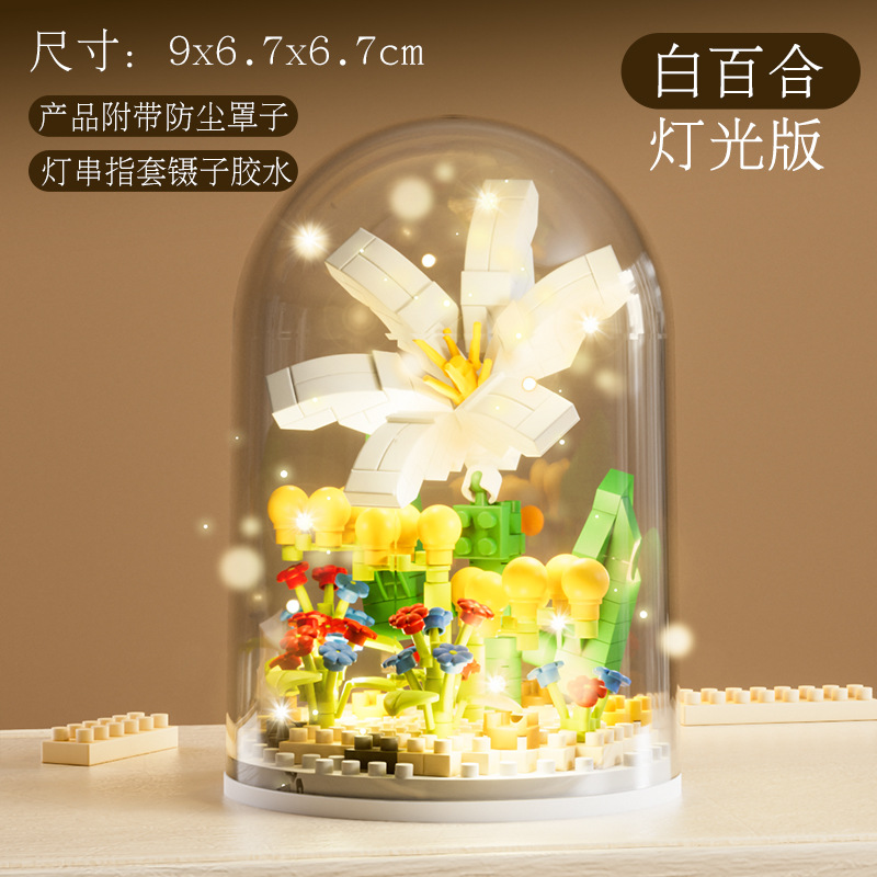 빌딩 블록 꽃 장난감 퍼즐 조립 빌딩 블록 작은 입자 소녀 빌딩 블록 꽃다발 선물 스톨 선물 레고와 호환 가능스토어 가기