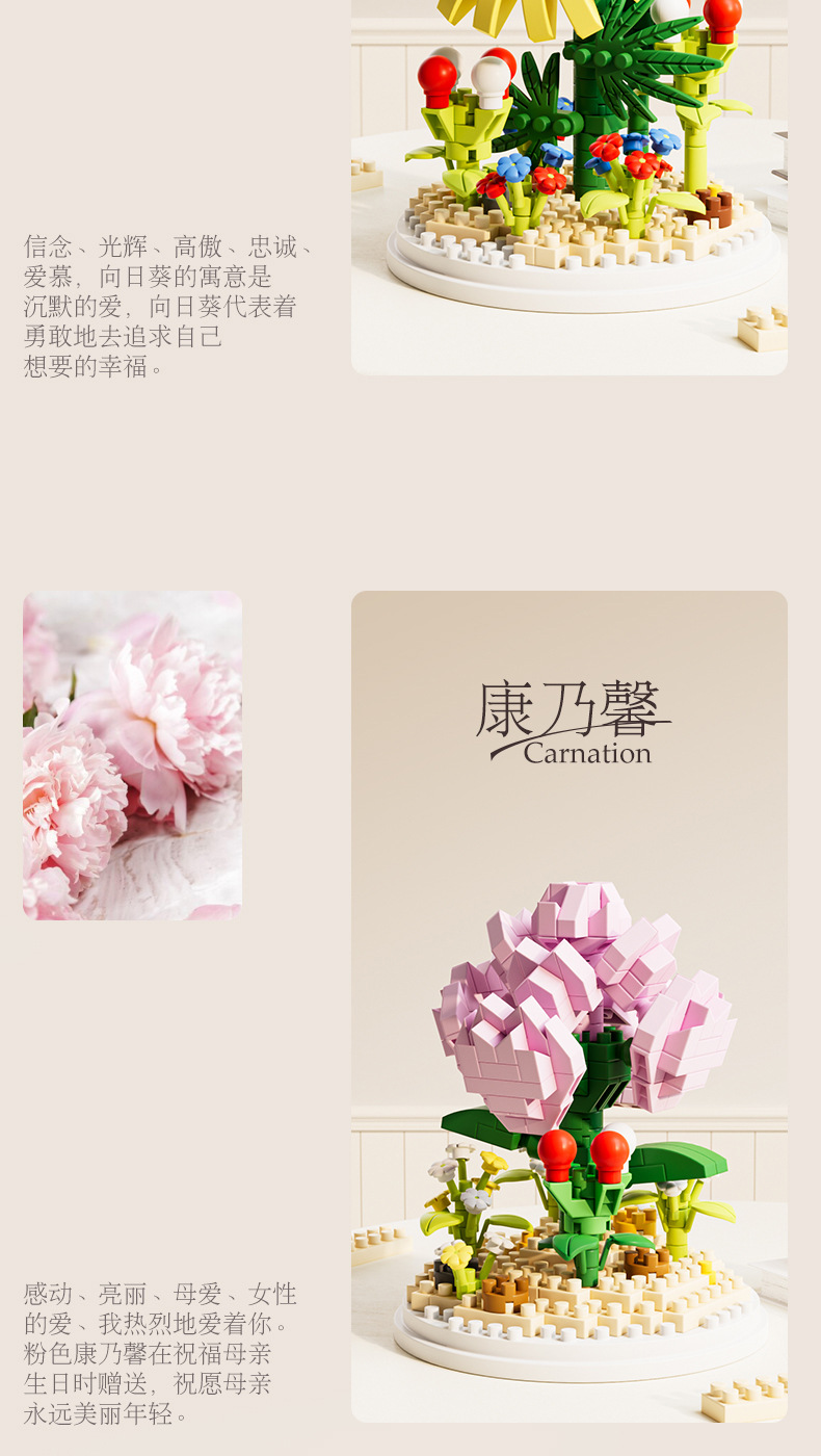 빌딩 블록 꽃 장난감 퍼즐 조립 빌딩 블록 작은 입자 소녀 빌딩 블록 꽃다발 선물 스톨 선물 레고와 호환 가능