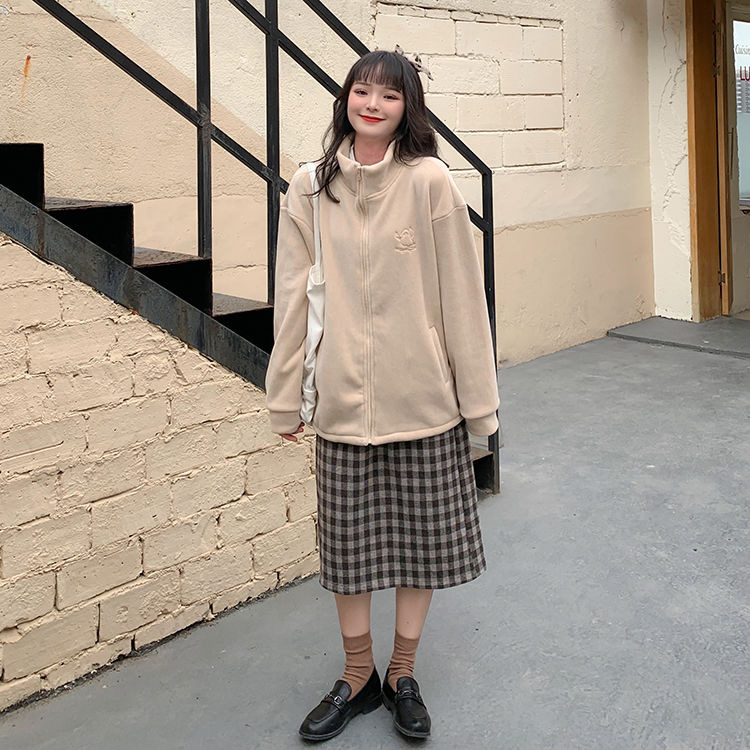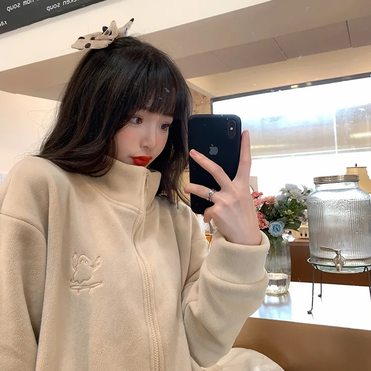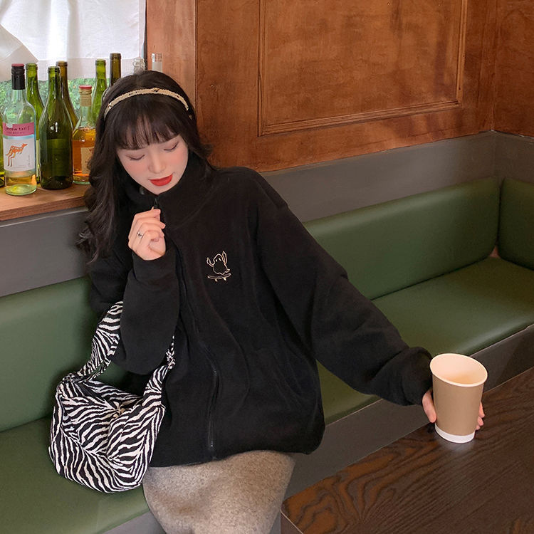 양면 폴라 플리스 플러스 사이즈 코트 여성의 가을과 겨울 반 터틀넥 지퍼 카디건 스웨터 여성의 기모 두꺼운 따뜻한스토어 가기