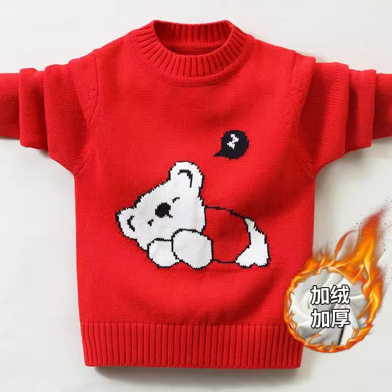 남학생과 여학생의 면화 스웨터 스웨터 스웨터 스웨터 싱글 얇은 미디어와 큰 어린이 내부 벨벳 봄과 가을
