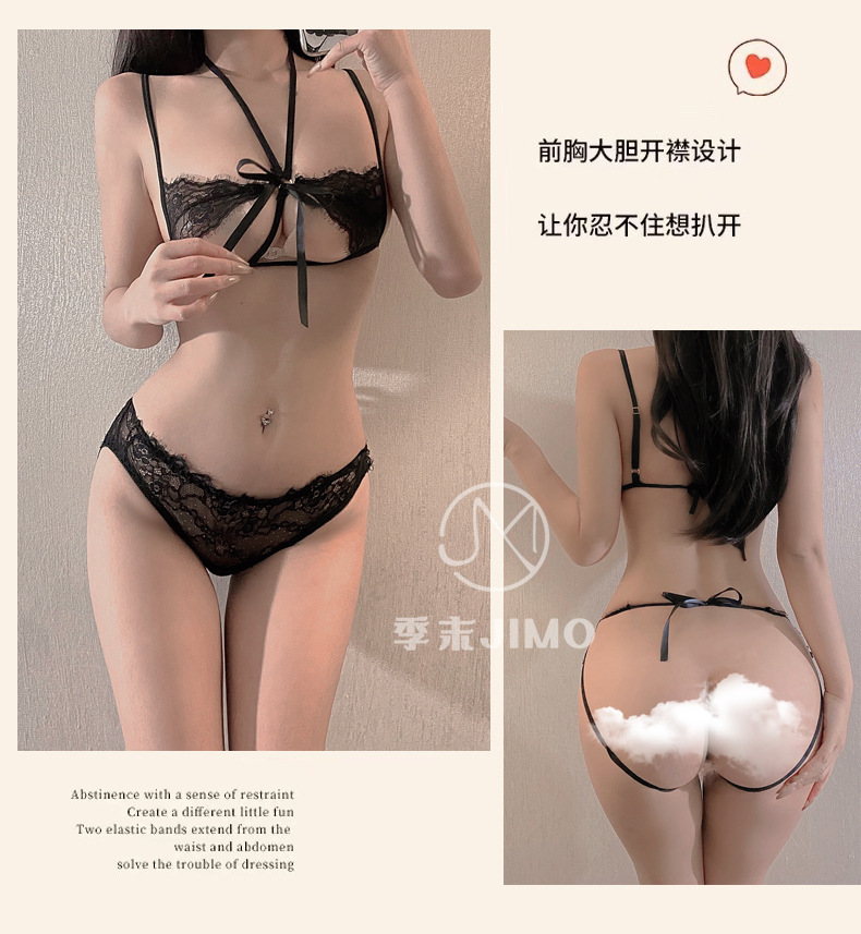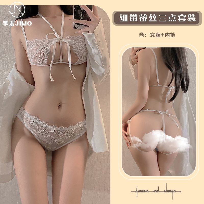 여자를위한 꿀 우유 기절 섹시한 브래지어 울트라 얇은 교수형 목 유혹 레이스 3 점 섹시한 속옷 순수한 욕망 메쉬 세트