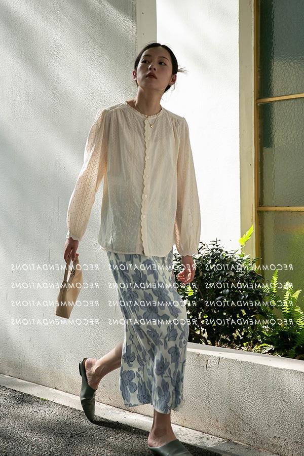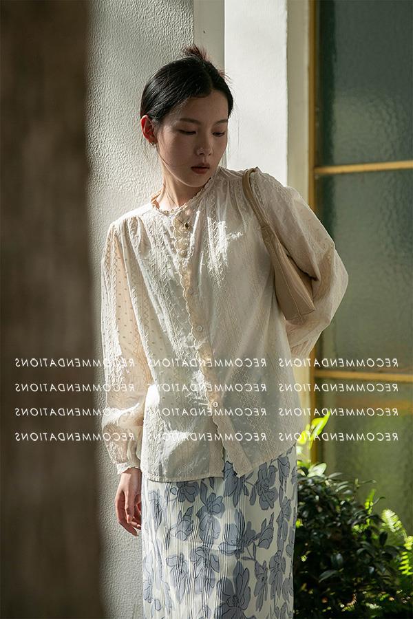 속이 빈 디자인 레이스 셔츠 여성상의 2025 봄 새로운 느슨한 캐주얼 긴팔 틈새 셔츠 여성스토어 가기