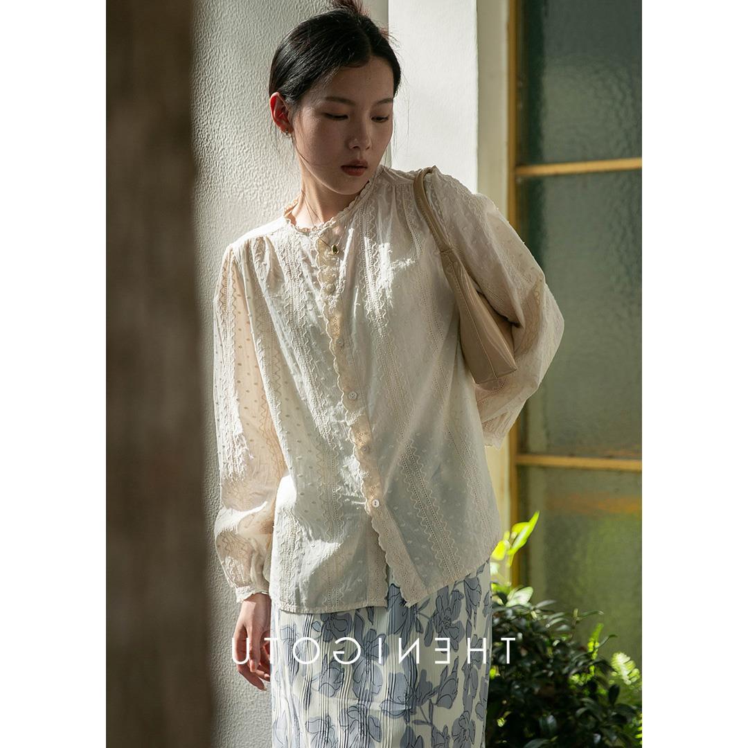 속이 빈 디자인 레이스 셔츠 여성상의 2025 봄 새로운 느슨한 캐주얼 긴팔 틈새 셔츠 여성
