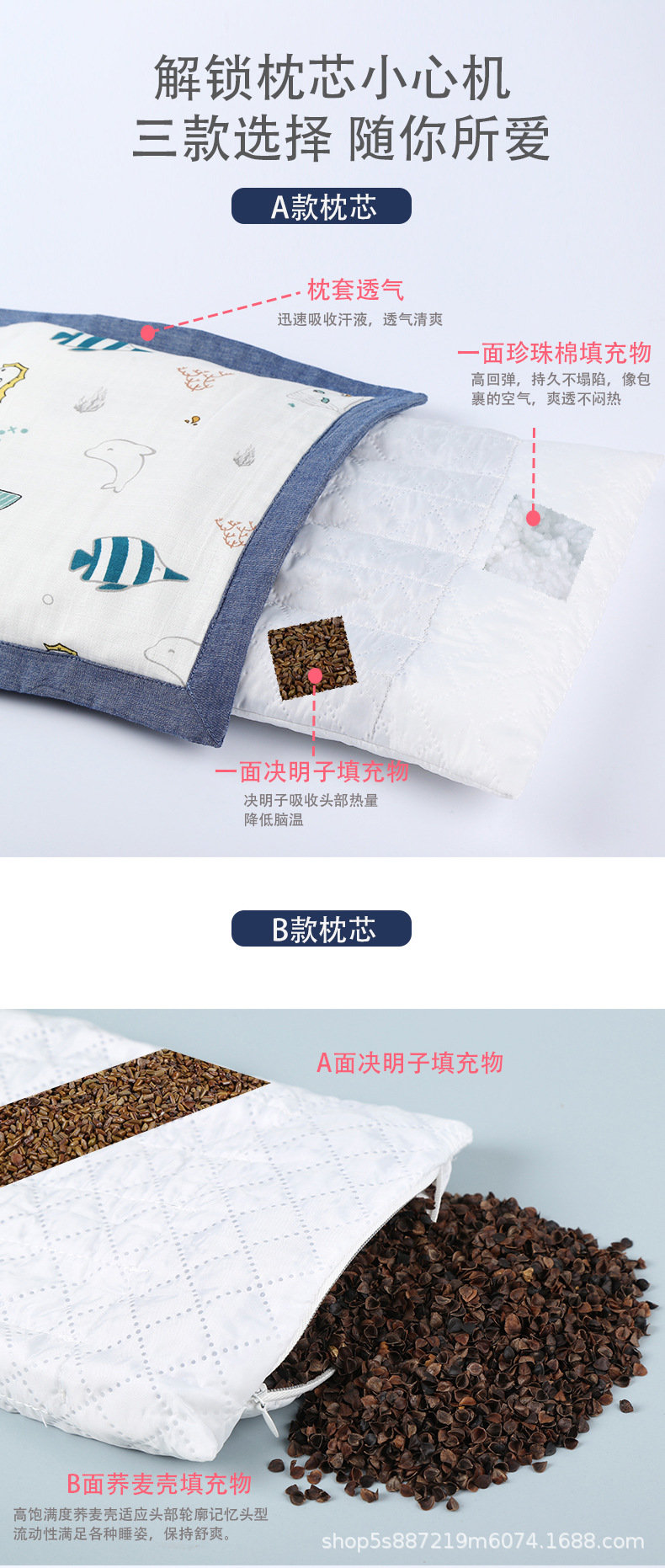 결명자와 메밀껍질로 채워진 유아용 평베개, 유아용 베개 커버는 탈부착 가능하며 만화 무늬가 있으며 세탁 가능합니다.스토어 가기