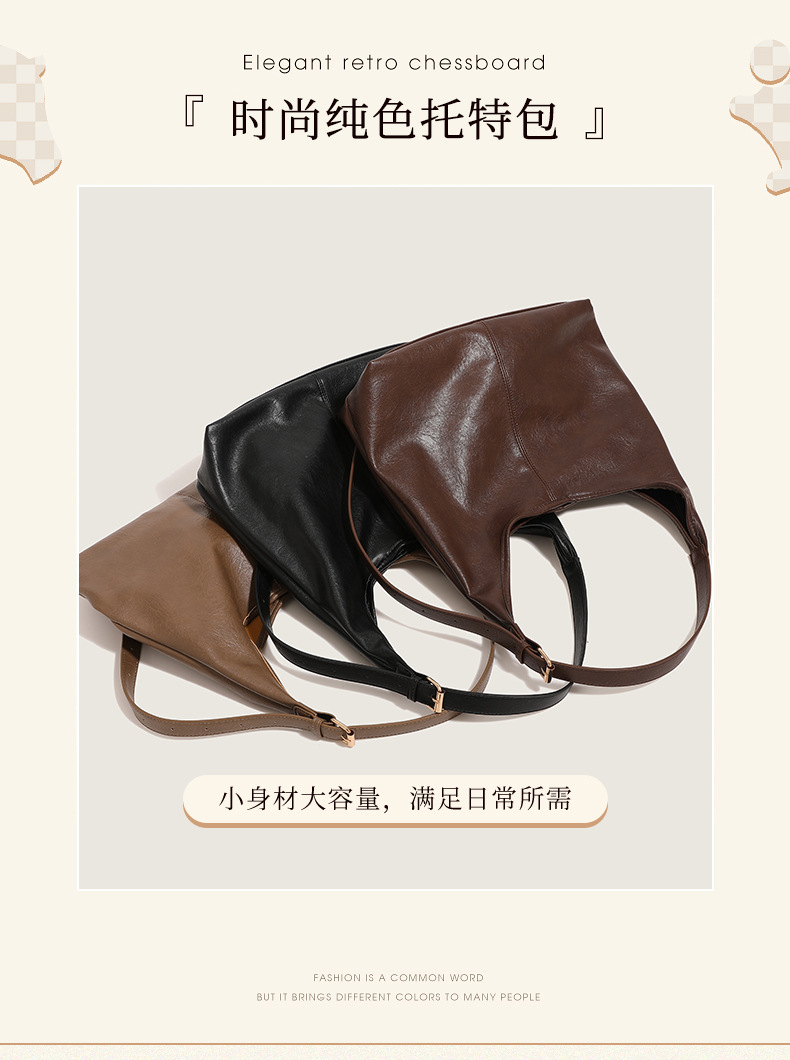 여성용 신상 대용량 숄더백, 레트로 솔리드 컬러 PU 질감, 다용도 토트백, 출퇴근용 겨드랑이 가방