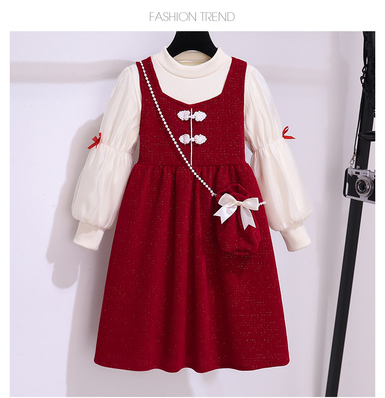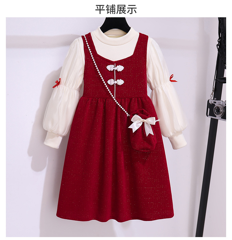 여자 원피스 세트 겨울 설날 원피스 중국 스타일 두꺼운 긴팔 원피스 공주 원피스 투피스 세트