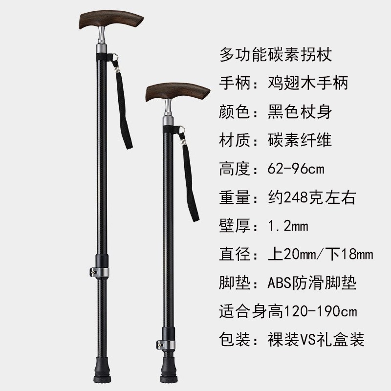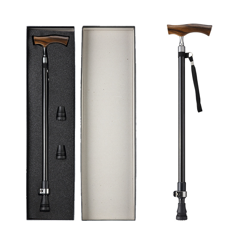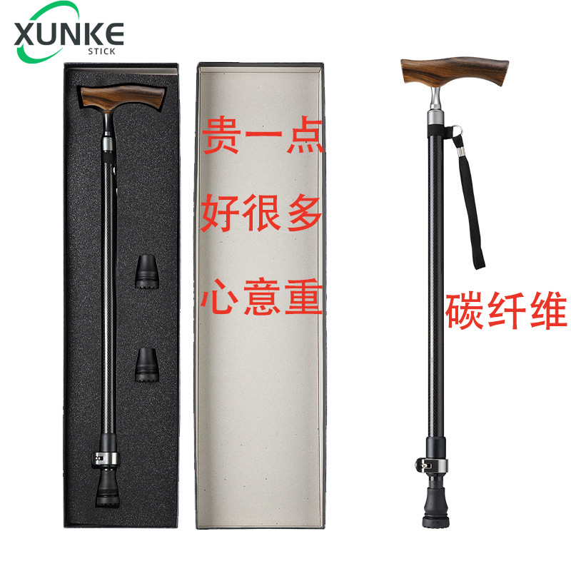 편안한 손잡이 탄소 섬유 노인 목발 오래된 백단목 목발 개폐식 미끄럼 방지 초경량 야외 등반 스틱스토어 가기