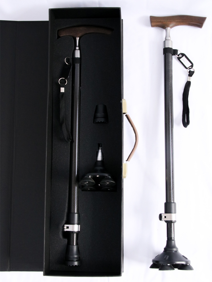 편안한 손잡이 탄소 섬유 노인 목발 오래된 백단목 목발 개폐식 미끄럼 방지 초경량 야외 등반 스틱