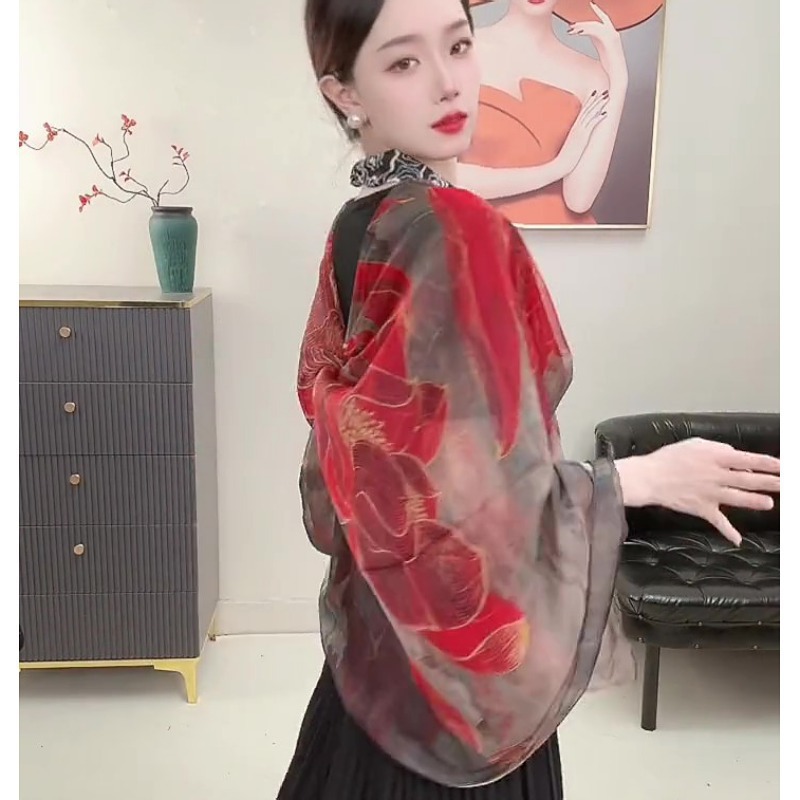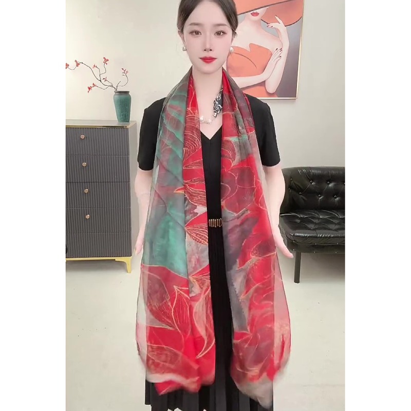 [레드 로터스] 봄과 여름 얇은 스카프 태양 보호 여행 사진 다양한 스카프 여성용 겉옷 오버 사이즈 패션 스카프