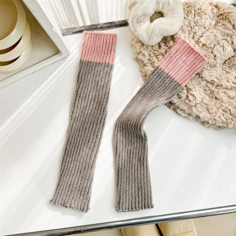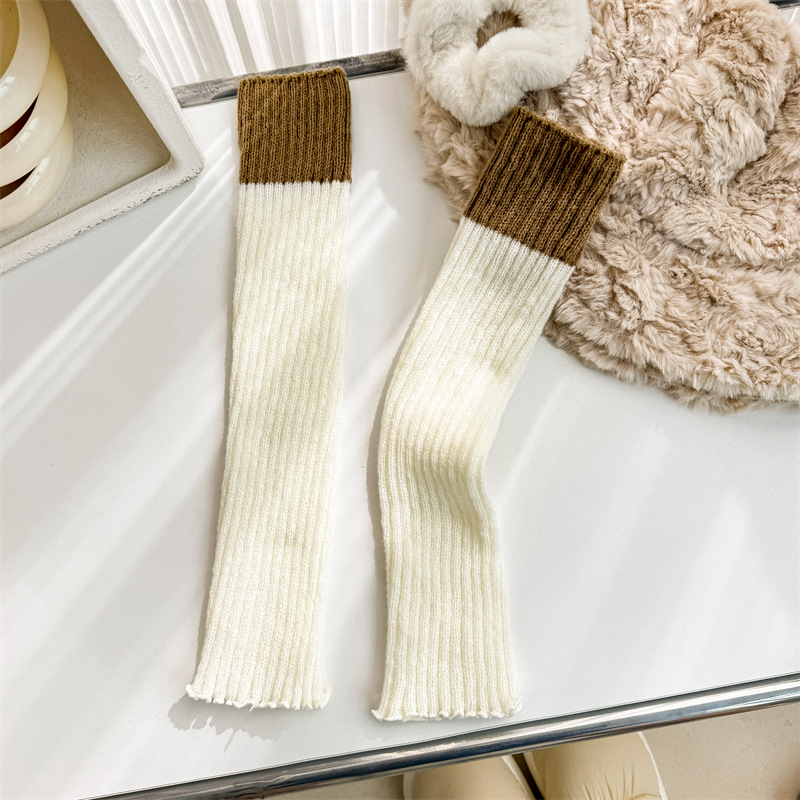니트 양말 봄과 가을 양모 대비 컬러 스티칭 다리 커버 인터넷 연예인 올 매치 종아리 양말 따뜻한 양모 더미 양말
