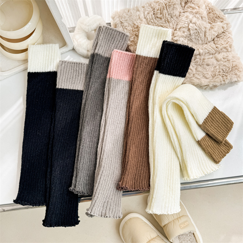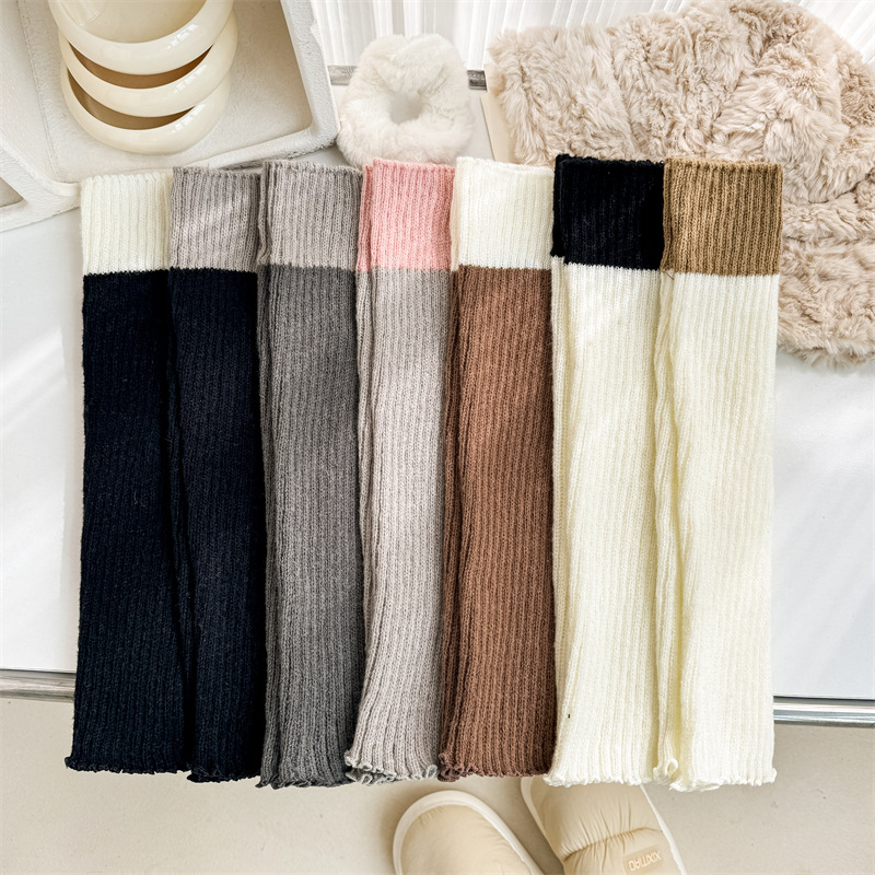 니트 양말 봄과 가을 양모 대비 컬러 스티칭 다리 커버 인터넷 연예인 올 매치 종아리 양말 따뜻한 양모 더미 양말스토어 가기