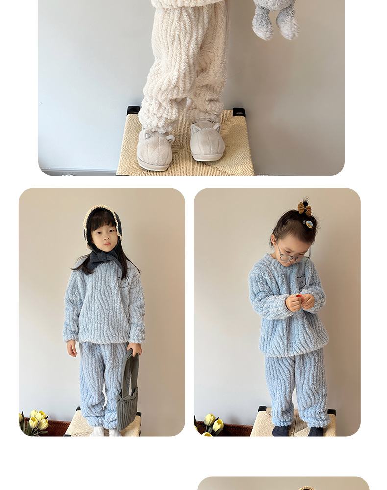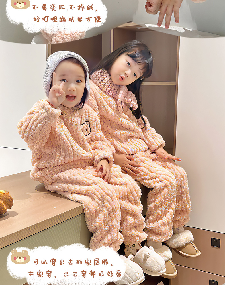 어린 소녀 어린이 플란넬 세트 세트 두꺼운 가정복을 기모 자카드 벨벳 소년과 소녀를 세트 어린이 잠옷스토어 가기