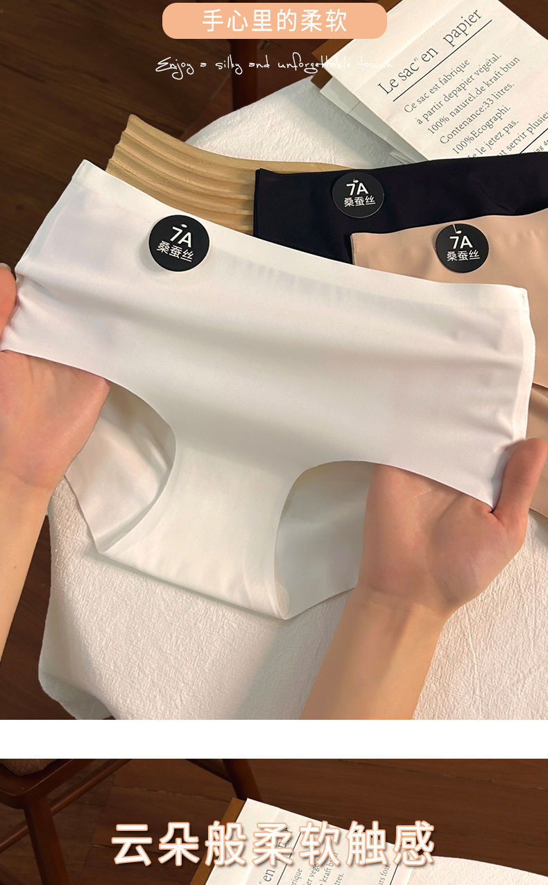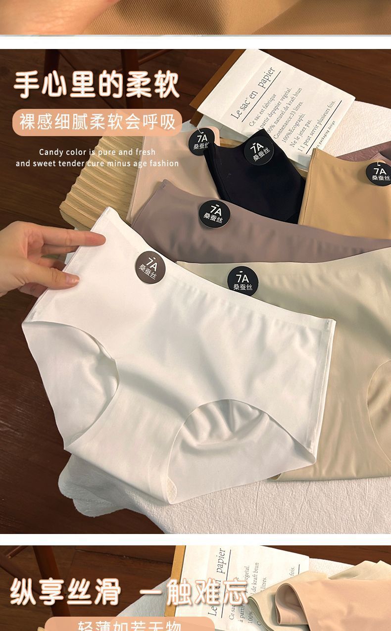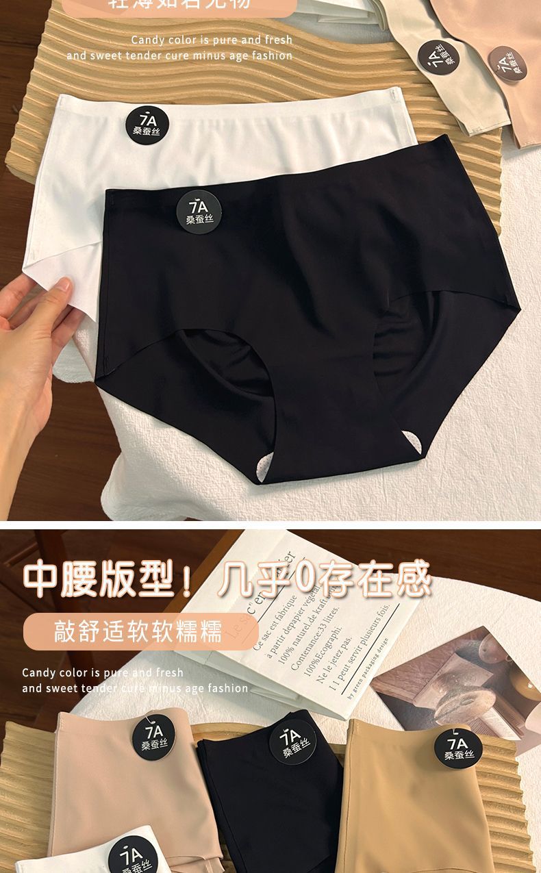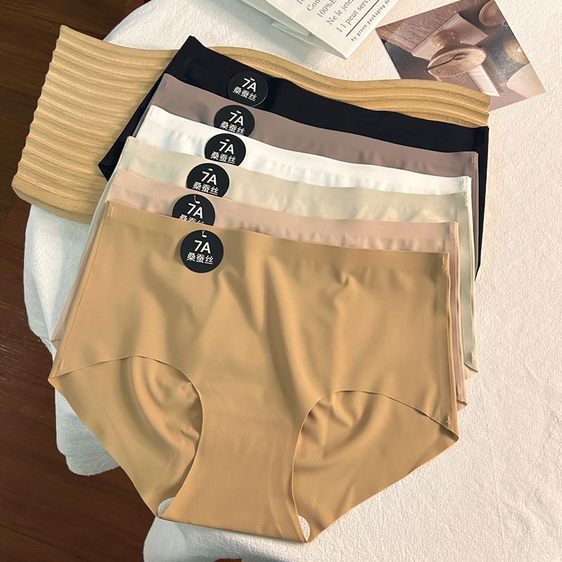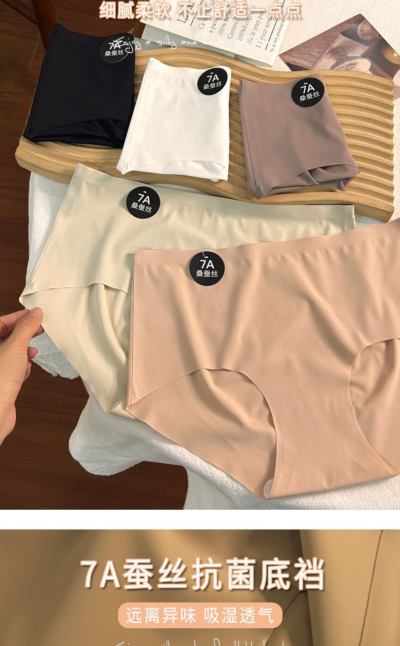 7A 품질 버전 소녀의 얼음 실크 원활한 속옷 부드러운 항균 뽕나무 실크 바닥 중간 허리 여성용 팬티 대외 무역스토어 가기