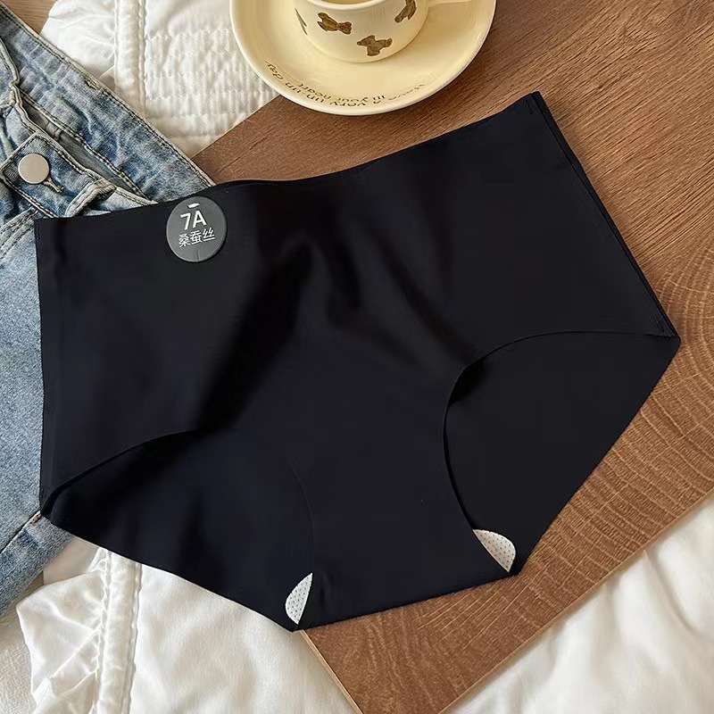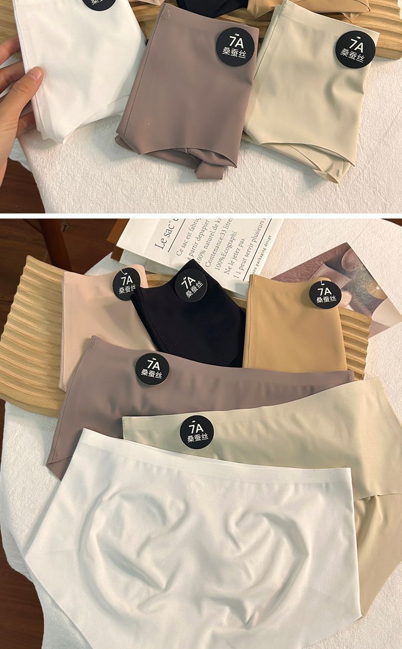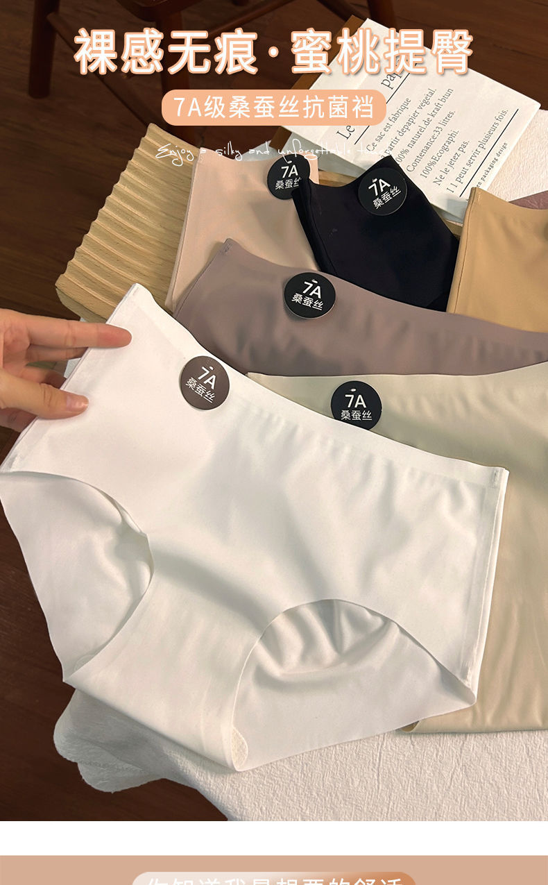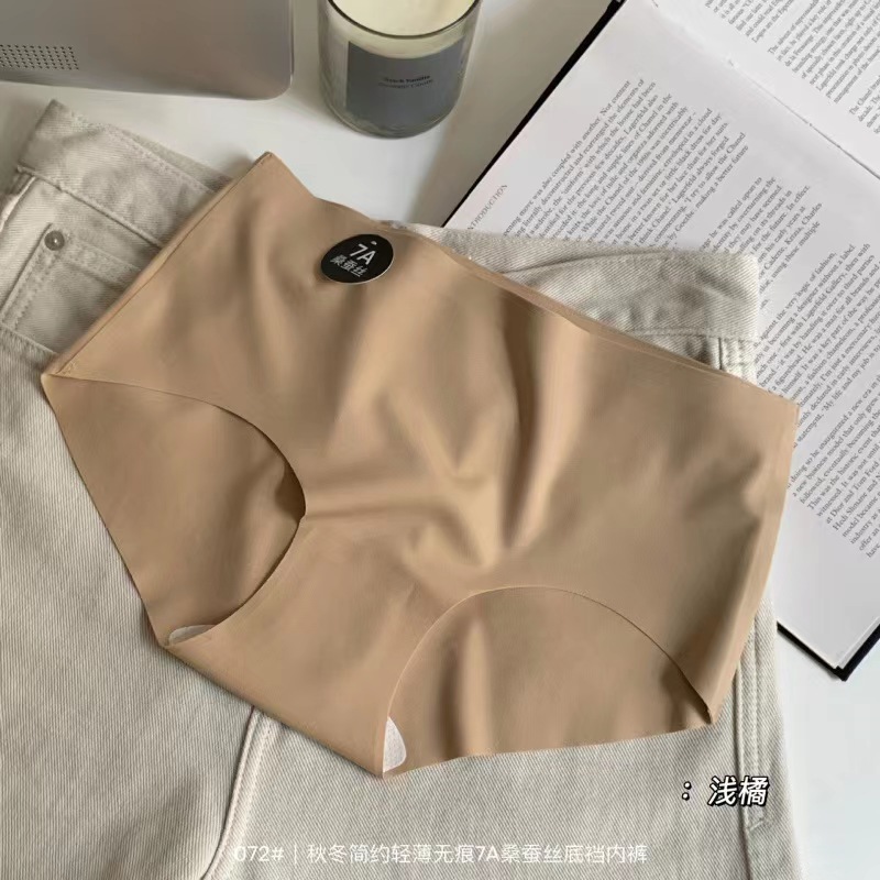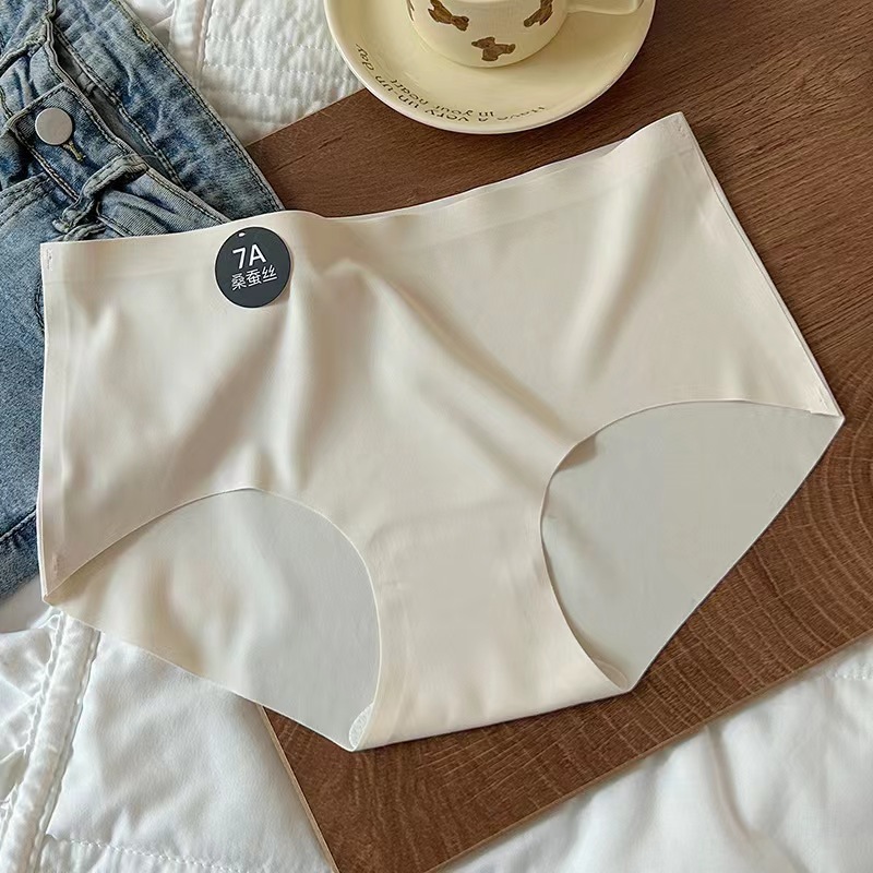 7A 품질 버전 소녀의 얼음 실크 원활한 속옷 부드러운 항균 뽕나무 실크 바닥 중간 허리 여성용 팬티 대외 무역스토어 가기